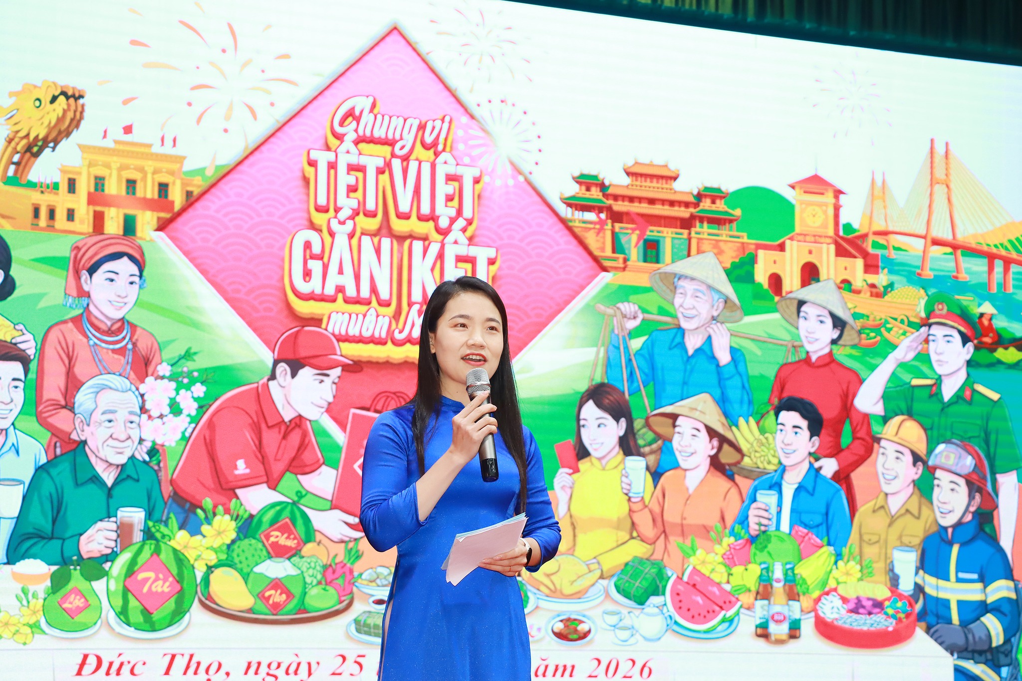 Phát biểu tại chương trình Ông Nguyễn Tiến Thiện - Giám đốc Công ty CPTM Bia Saigon Bắc Trung Bộ cho biết: Chương trình “Chung Vị Tết Việt, Gắn Kểt Muôn Miền” do SABECO khởi xướng. Chương trình vinh dự được thực hiện với sự đồng hành của MTTQ với mục tiêu tôn vinh truyền thống văn hóa ngày Tết cổ truyền của Việt Nam, lan tỏa tinh thần đoàn kết, đoàn viên và sẻ chia yêu thương trong cộng đồng. Chương trình không chỉ mang ý nghĩa hỗ trợ vật chất, mà còn là sự sẻ chia, động viên tinh thần, góp phần để mọi người, mọi nhà đều được đón một mùa xuân ấm áp, nghĩa tình và trọn vẹn niềm vui.