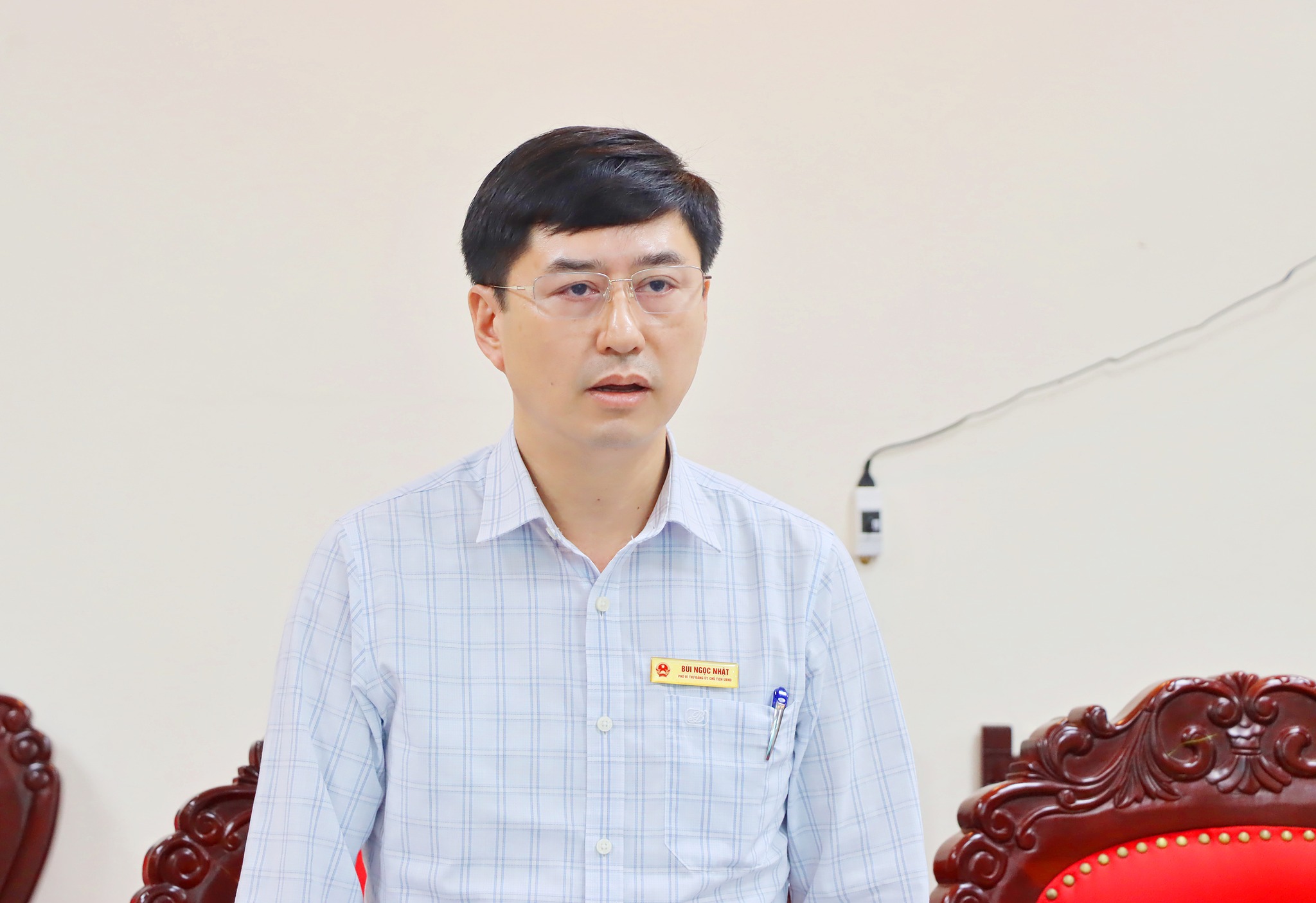 Đồng chí Bùi Ngọc Nhật - Chủ tịch UBND xã phát biểu tại cuộc họp.