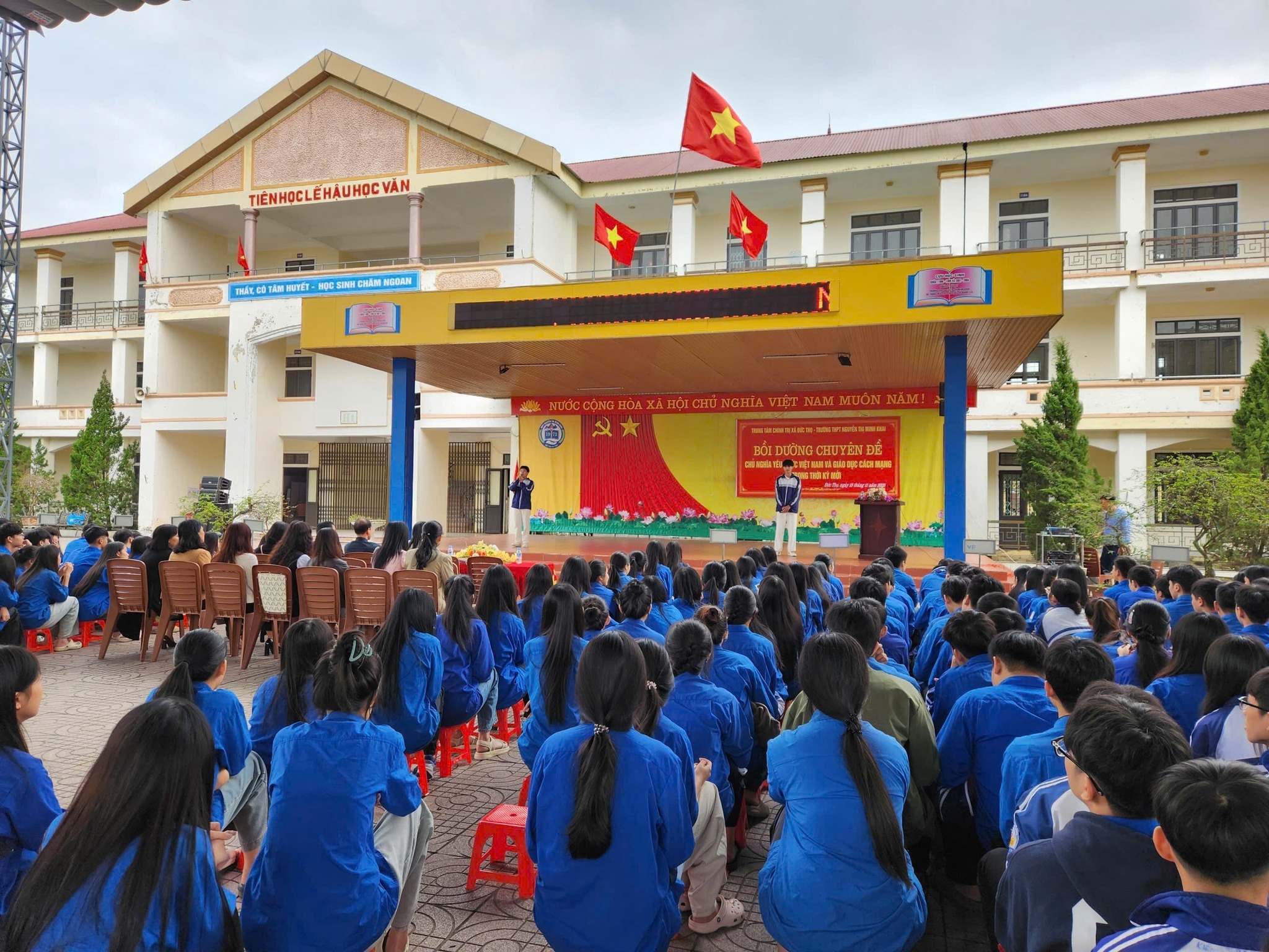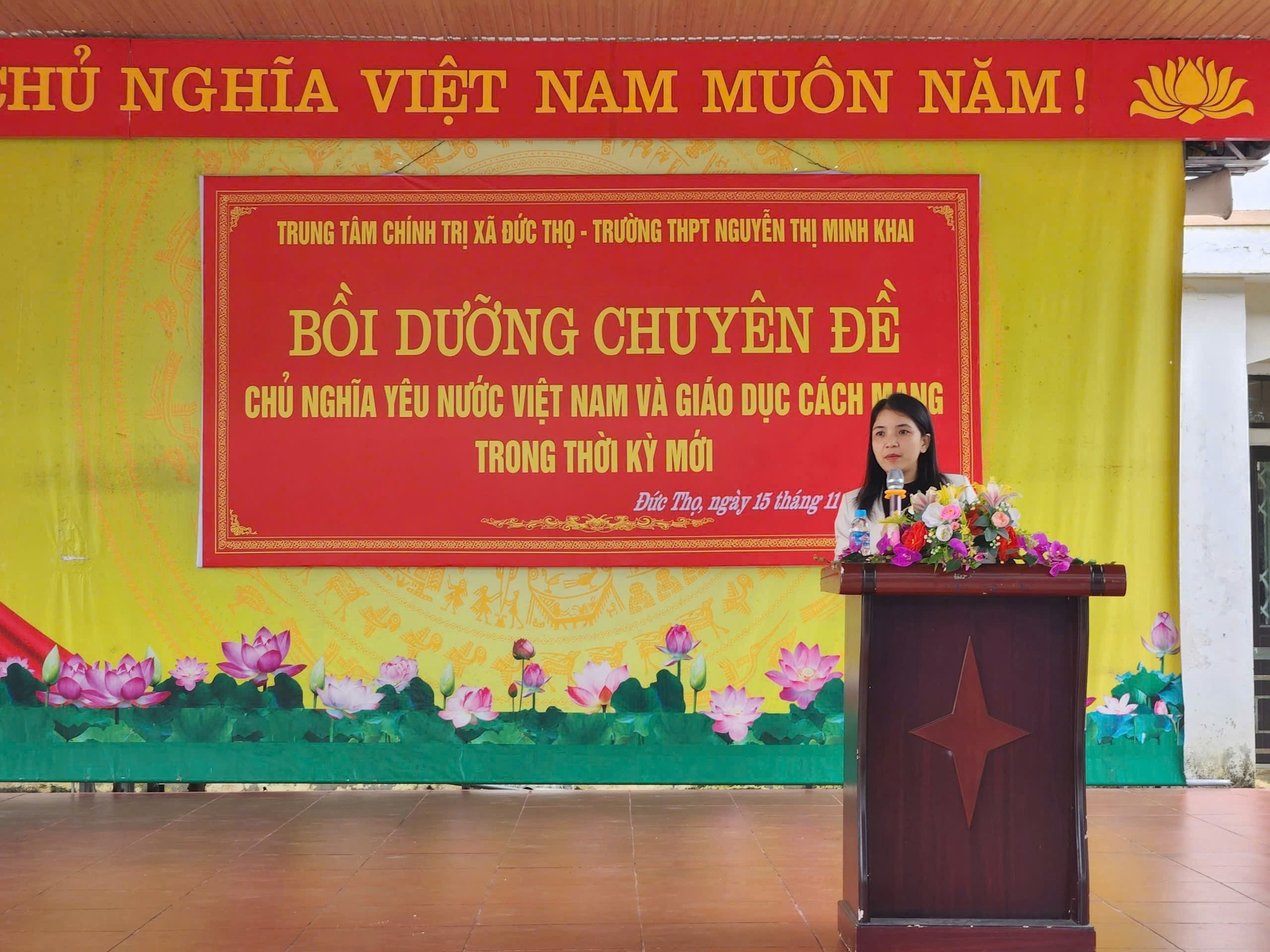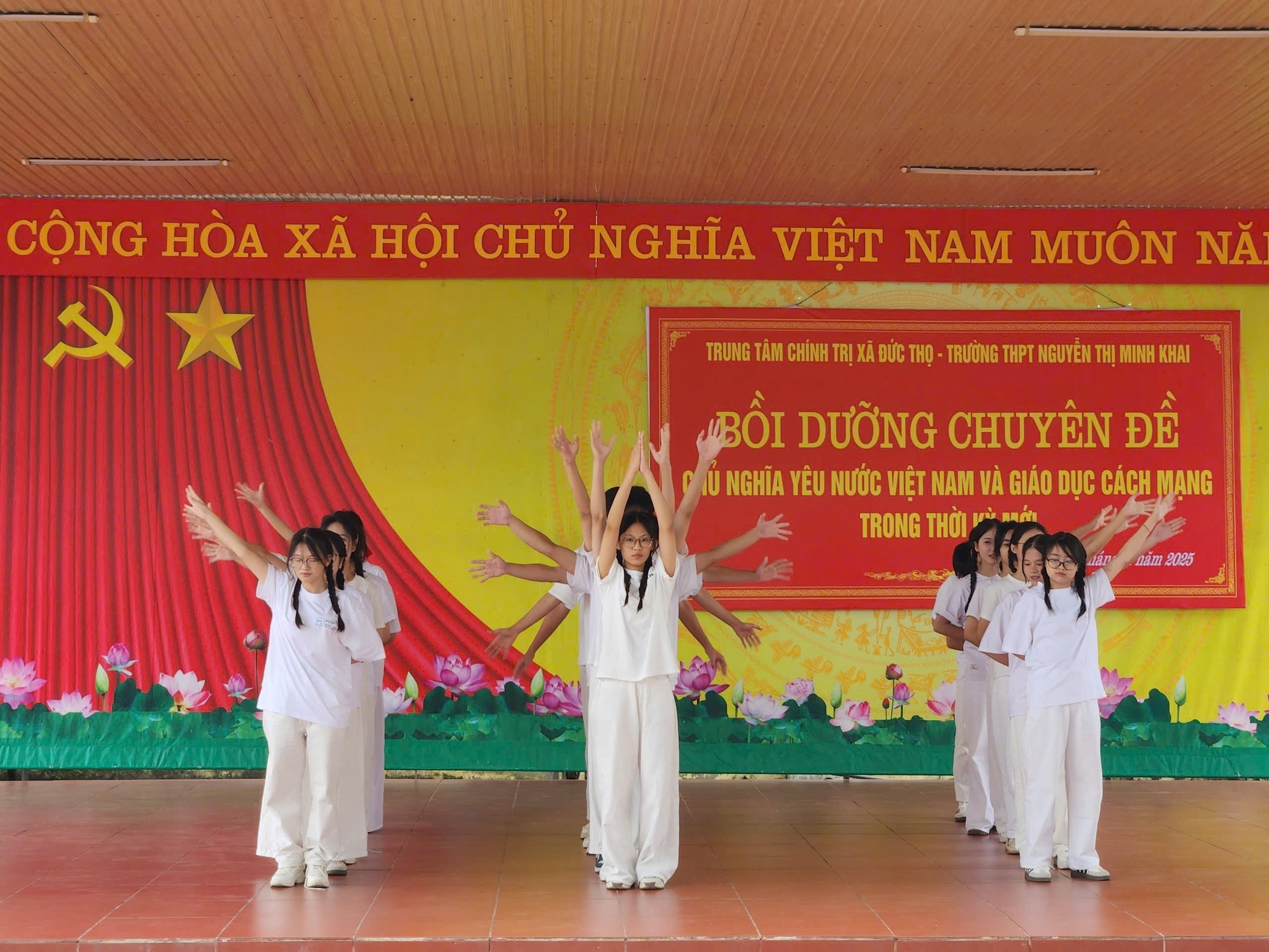 Chào mừng kỷ niệm 43 năm Ngày Nhà giáo Việt Nam 20/11, sáng ngày 15/11/2025, Trung tâm Chính trị xã Đức Thọ phối hợp với Trường THPT Nguyễn Thị Minh Khai tổ chức lớp Bồi dưỡng chủ nghĩa yêu nước và giáo dục đạo đức cách mạng trong thời kỳ mới cho đoàn viên, học sinh.
