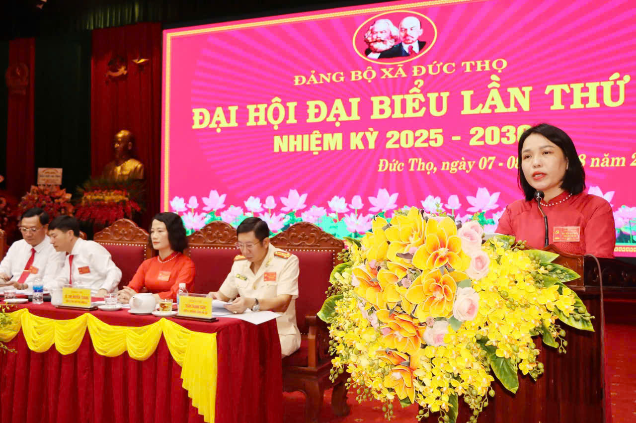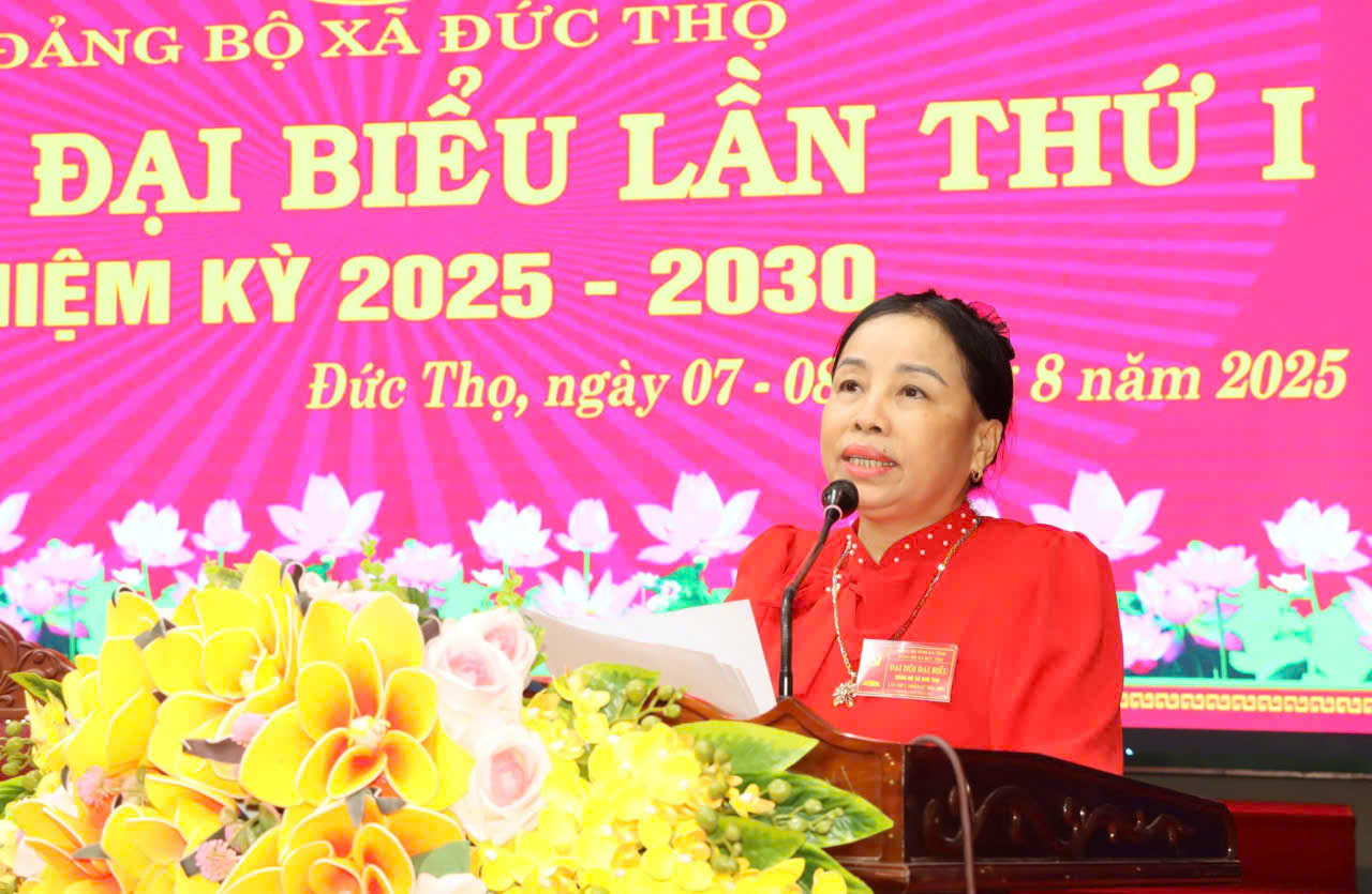 Đồng chí Đường Thị Phú - Phó BT thường trực Đảng ủy trình bày báo cáo Chính trị