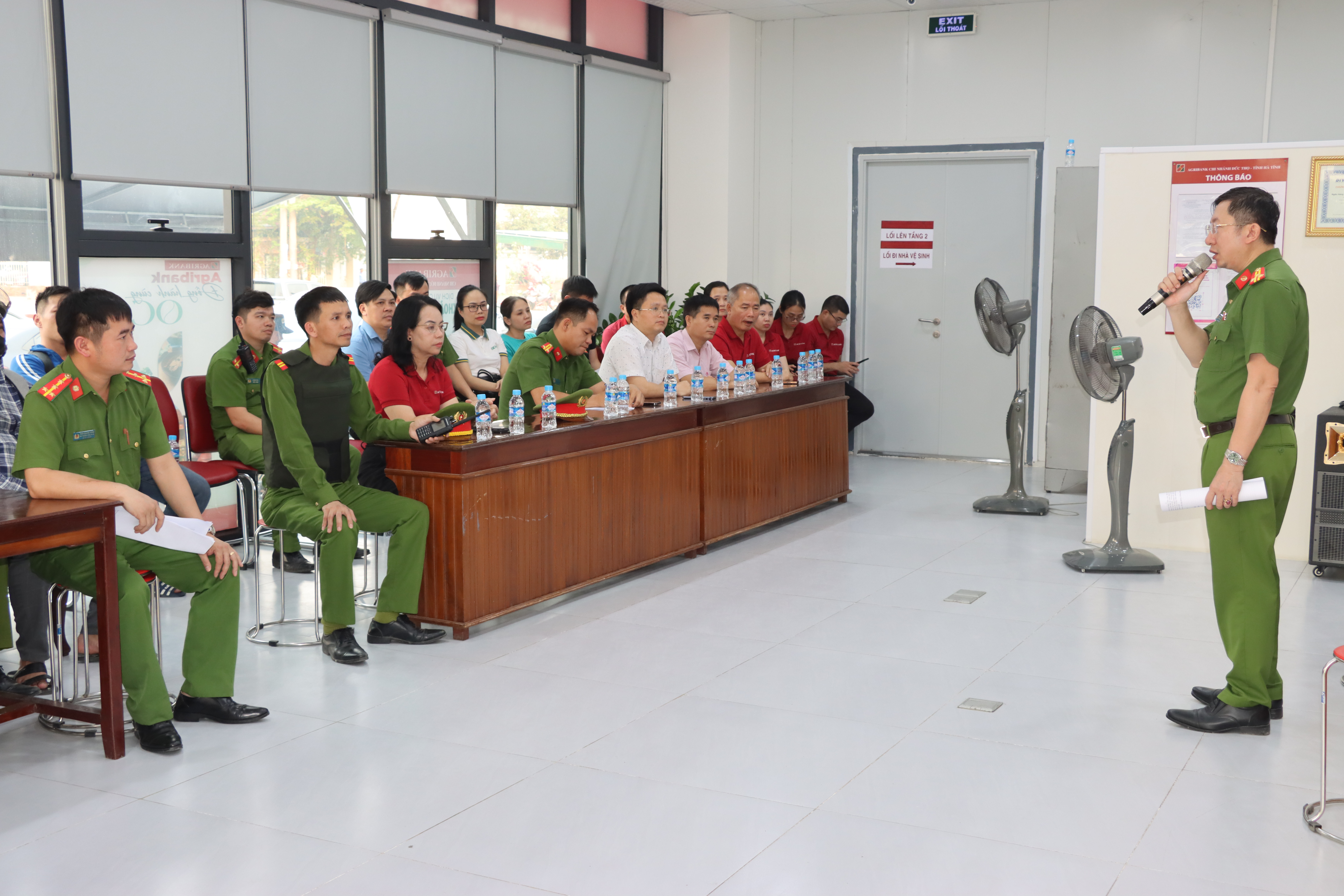 Đồng chí Trưởng Công an xã Đức Thọ nhấn mạnh: Đây là hoạt động nhằm nâng cao năng lực xử lý tình huống, tăng cường phối hợp giữa lực lượng công an với lực lượng bảo vệ, cán bộ, nhân viên ngân hàng, bảo đảm an ninh, an toàn hệ thống tài chính – ngân hàng trên địa bàn xã.