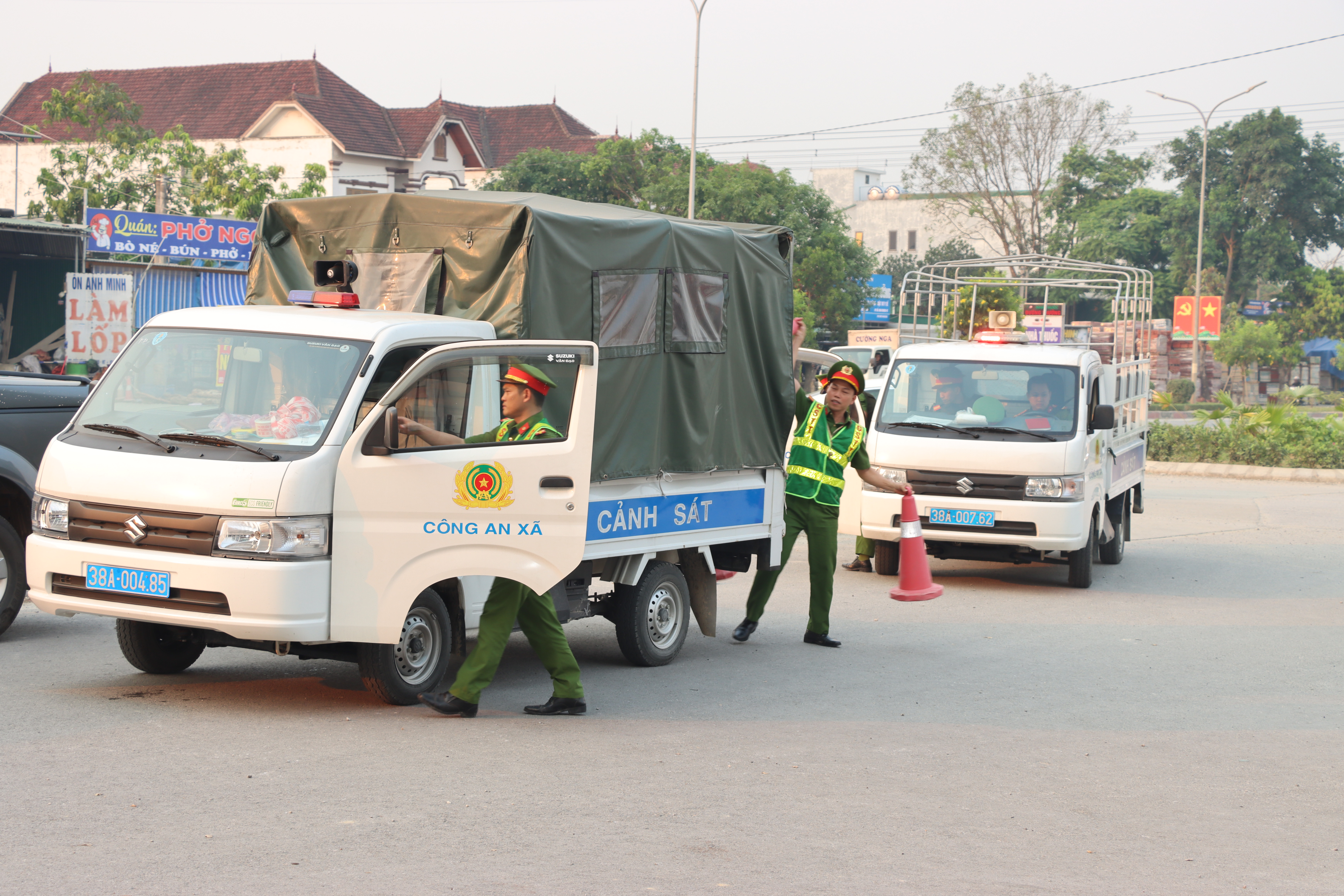 Thượng tá Trần Thanh Tuấn , Trưởng Công an xã Đức Thọ trực tiếp chỉ huy lực lượng triển khai phong tỏa hiện trường...