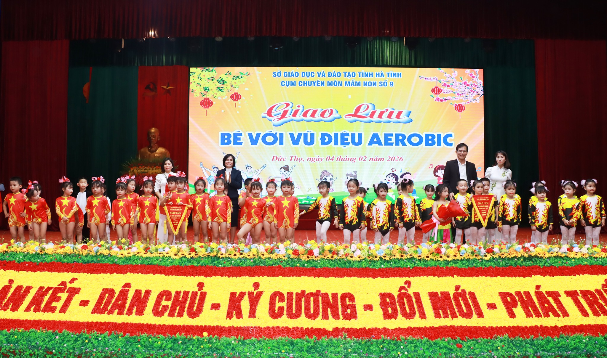 Chiều ngày 04/2/2026 cụm chuyên môn trường mầm non số 9 tổ chức Ngày hội tài năng của bé năm học 2025-2026. Tới dự chương trình “Bé với vũ điệu Aerobic – Cấp Cụm” Cụm trường mầm non số 9 có đại diện lãnh đạo phòng chuyên môn sở GD-ĐT, lãnh đạo phòng Văn hóa Xã hội xã Đức Thọ, cán bộ quản lý, giáo viên 24 trường mầm non trong cụm về tham dự.
