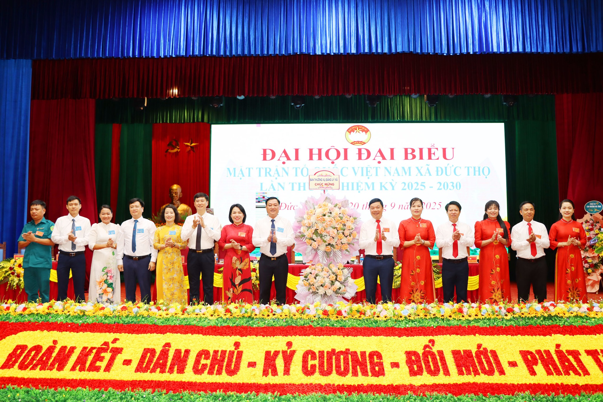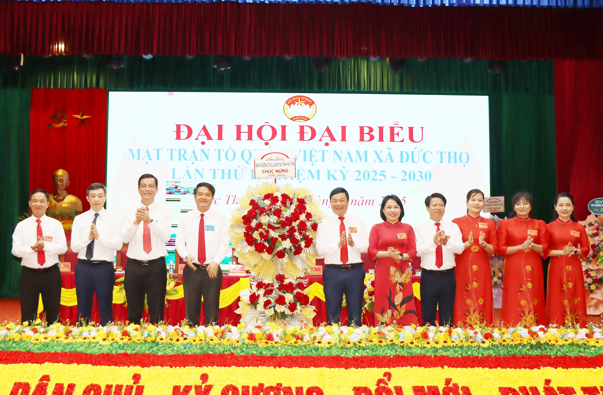 Lãnh đạo xã Đức Thọ tặng hoa chúc mừng Đại hội.