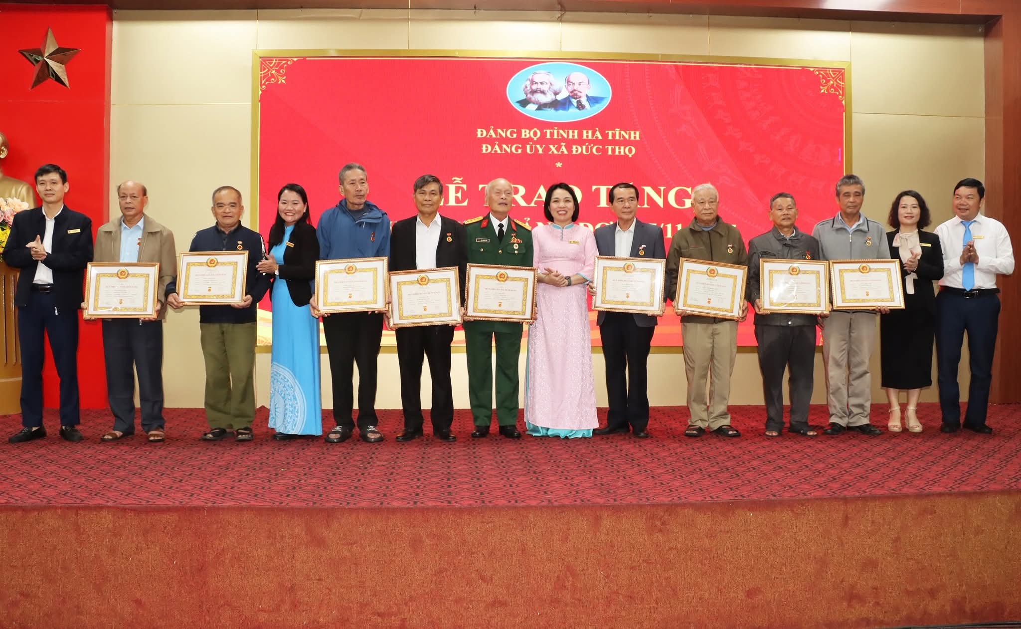 Phát biểu tại buổi lễ, Phó Bí thư Thường trực Đảng ủy xã Đức Thọ, Đường Thị Phú cho biết, đợt này toàn Đảng bộ có 32 đảng viên được tặng Huy hiệu Đảng. Trong đó: Huy hiệu 30 năm tuổi đảng 03 đồng chí; 40 năm tuổi đảng 06 đồng chí; 45 năm tuổi đảng 06 đồng chí; 50 năm tuổi đảng 03 đồng chí; 55 năm tuổi đảng 01 đồng chí; 60 năm tuổi đảng 11 đồng chí; 65 năm tuổi đảng 01 đồng chí; 70 năm tuổi đảng 01 đồng chí.