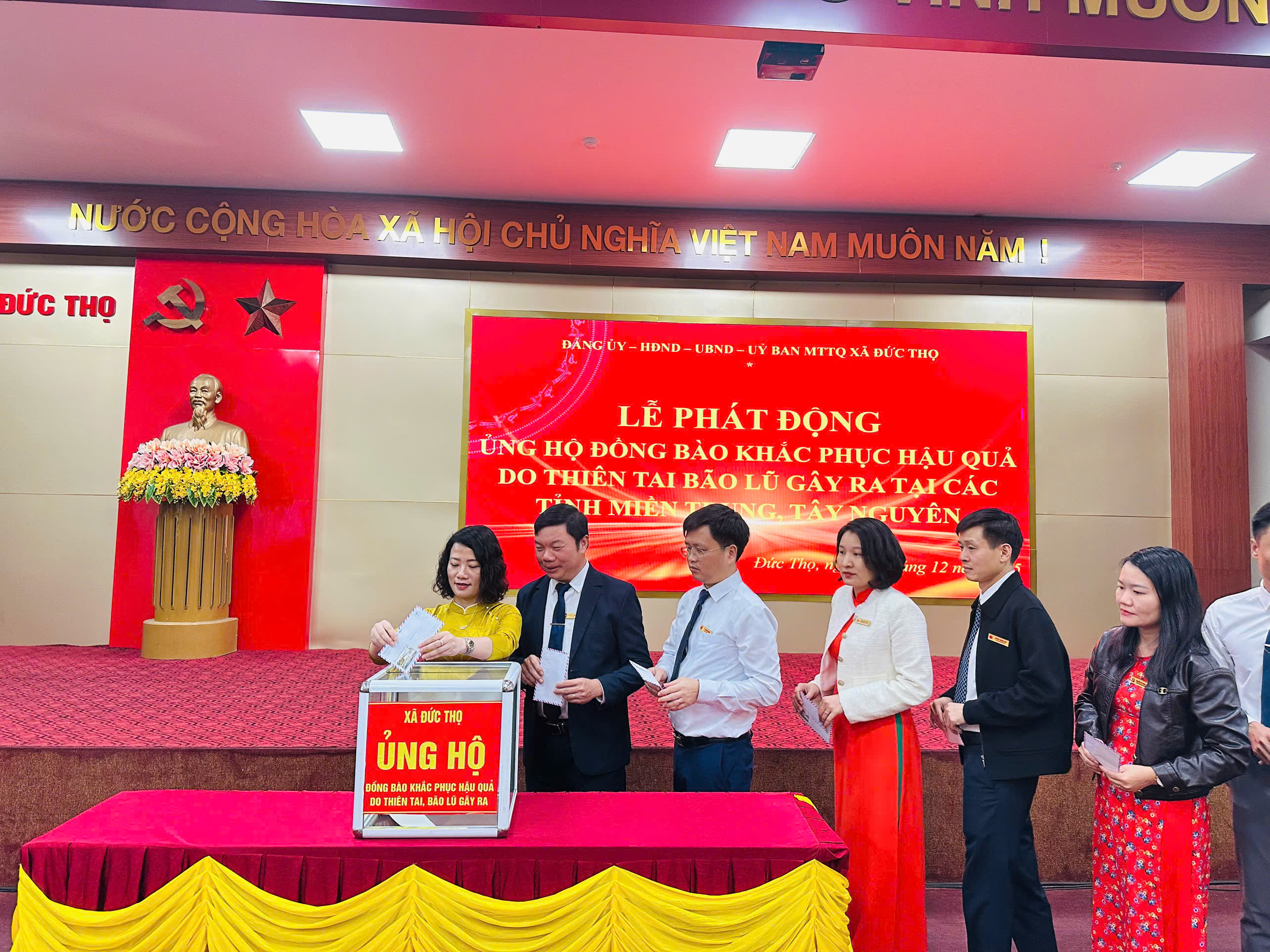 Đồng chí Nguyễn Đăng Quân, Chủ tịch UBMTTQ xã phát động ủng hộ