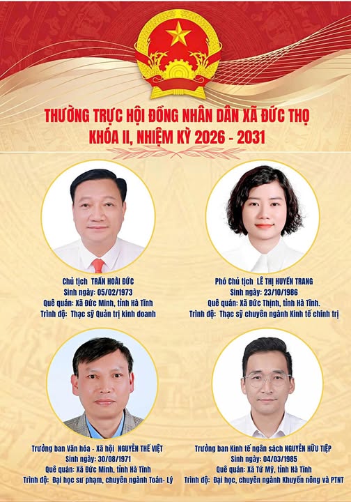 Danh sách Thường trực HĐND xã Đức Thọ, nhiệm kỳ 2026-2031