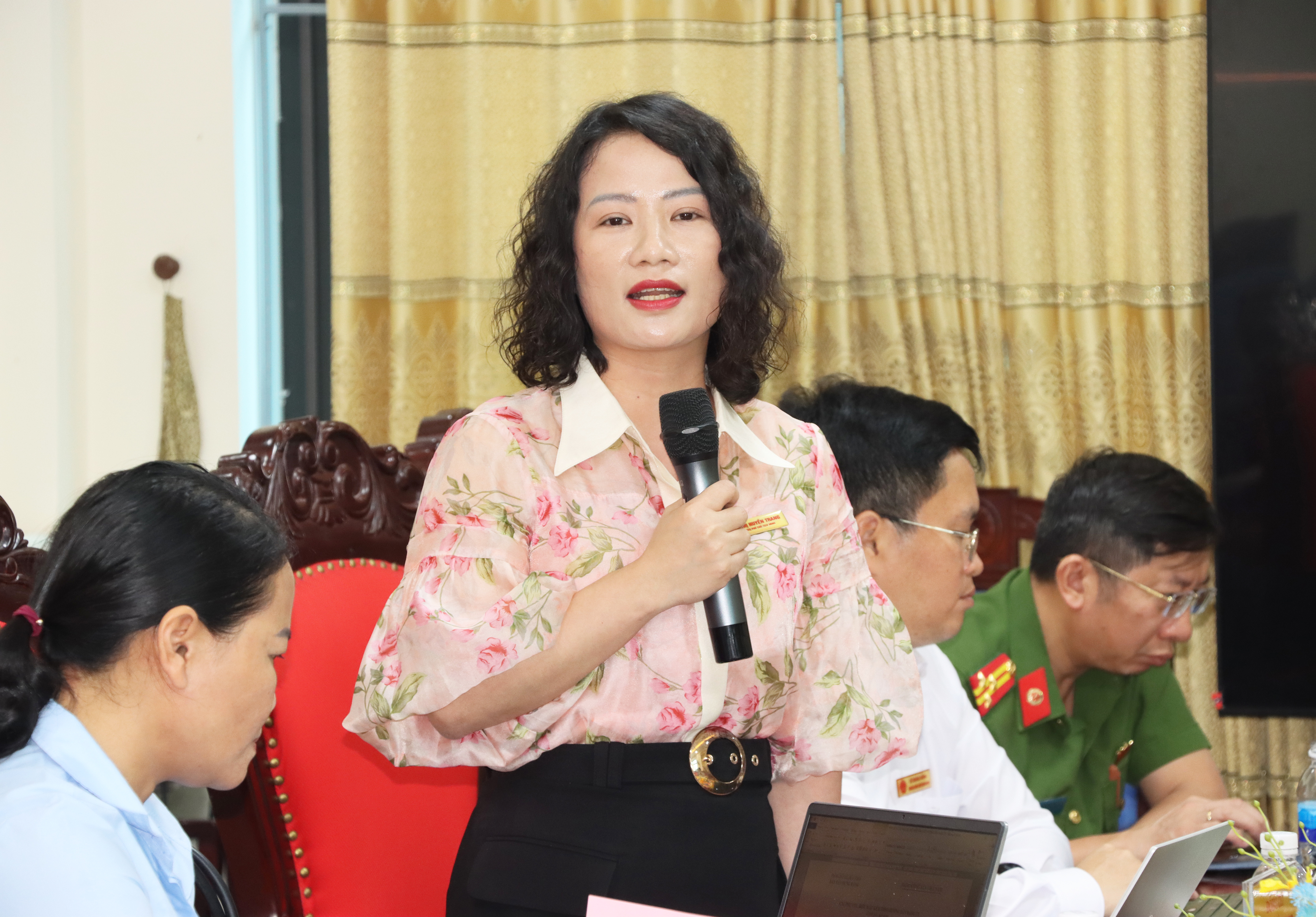 Phó Chủ tịch HĐND xã, Lê Thị Huyền Trang phát biểu về một số nội dung liên quan đến hoạt động của HĐND cấp xã.