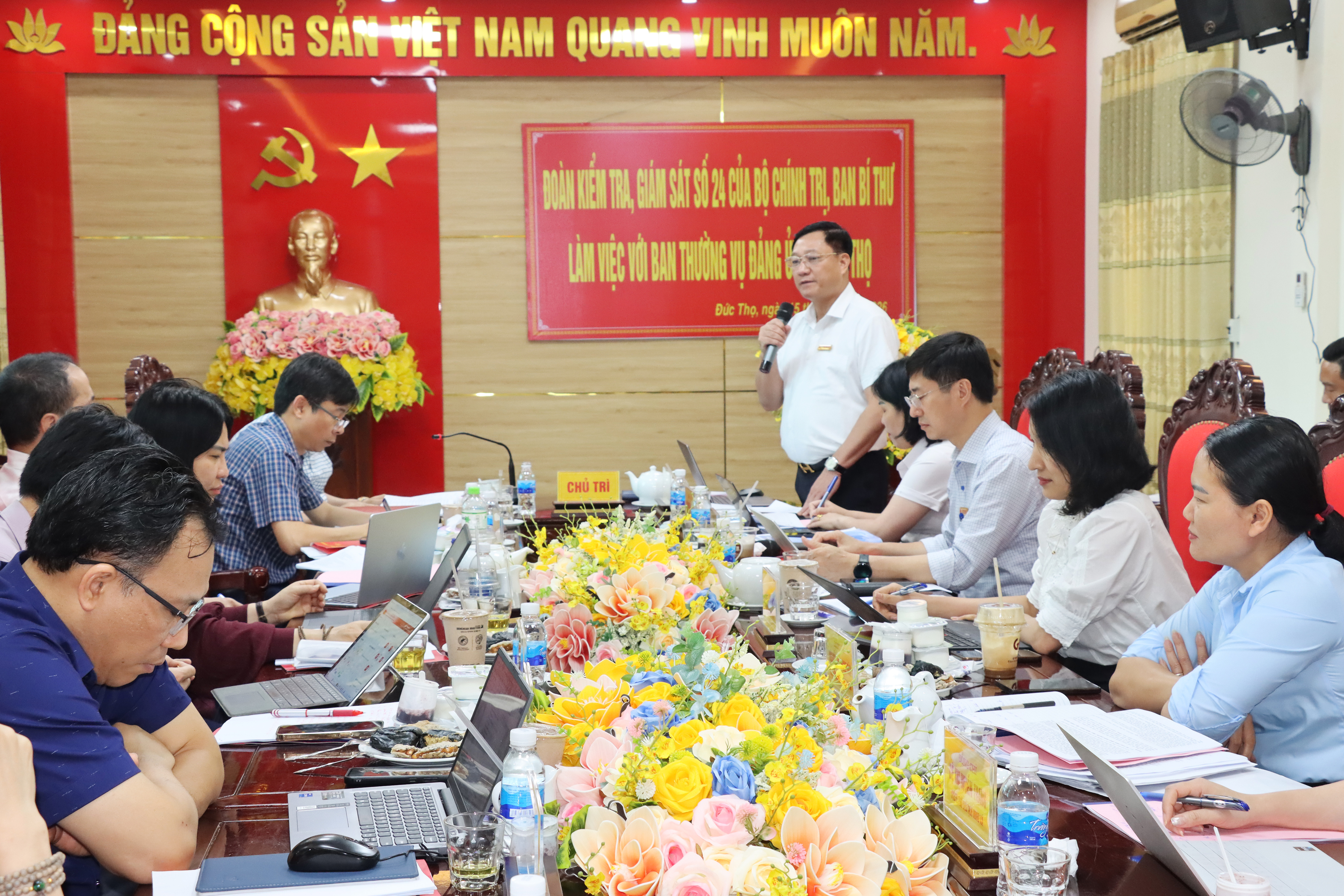 Đồng chí Trần Hoài Đức - Ủy viên BCH Tỉnh ủy, Bí thư Đảng ủy, Chủ tịch HĐND xã tiếp thu ý kiến, bày tỏ, với tinh thần nghiêm túc và cầu thị, Ban Thường vụ Đảng ủy xã Đức Thọ mong muốn tiếp tục nhận được sự chỉ đạo của Bộ Chính trị, Ban Bí thư và trực tiếp là Đoàn kiểm tra, giám sát số 24.