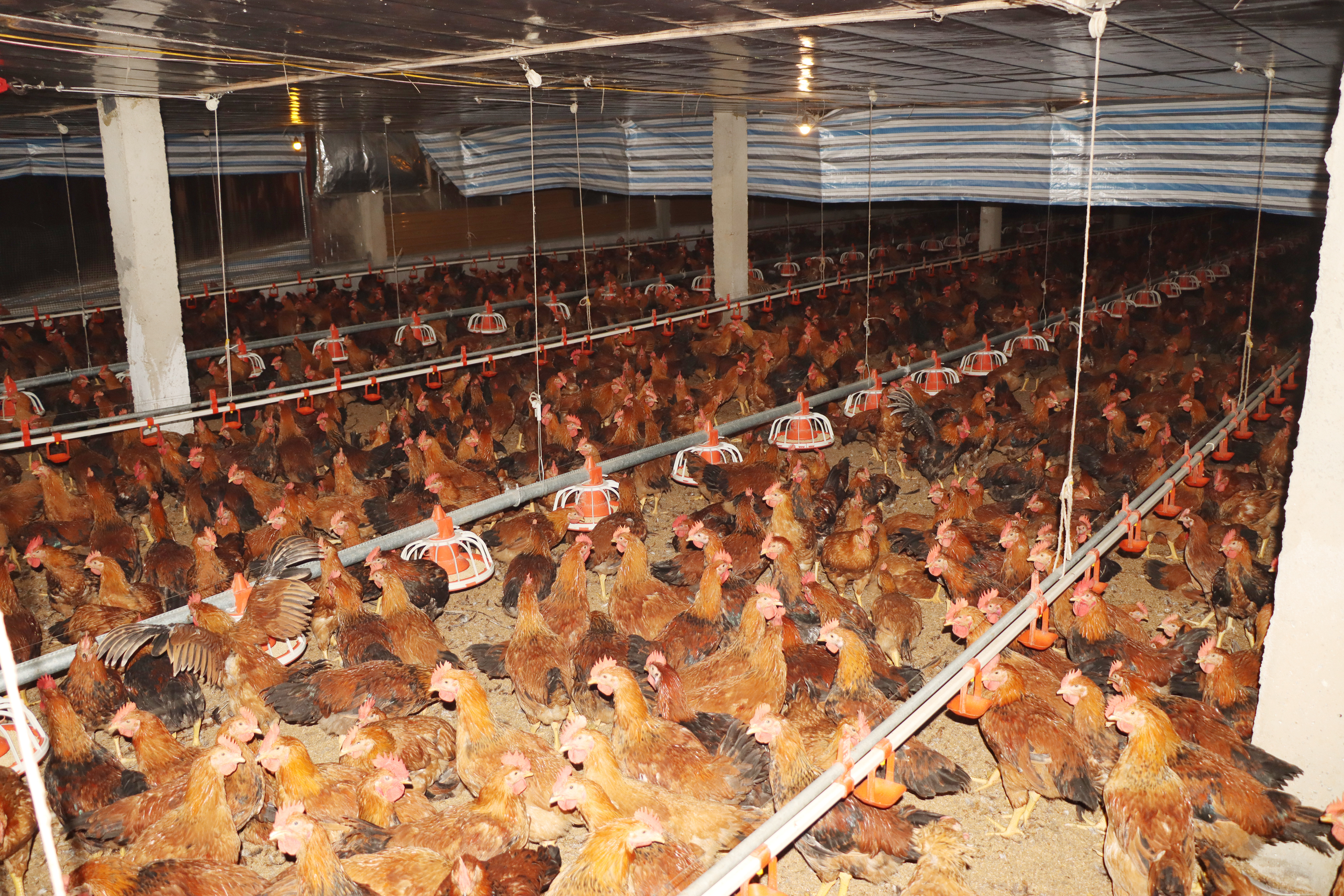 Mô hình trang trại chăn nuôi công nghiệp liên kết gia công với Tập đoàn Japfa (gà màu) tại thôn Thịnh Cường.