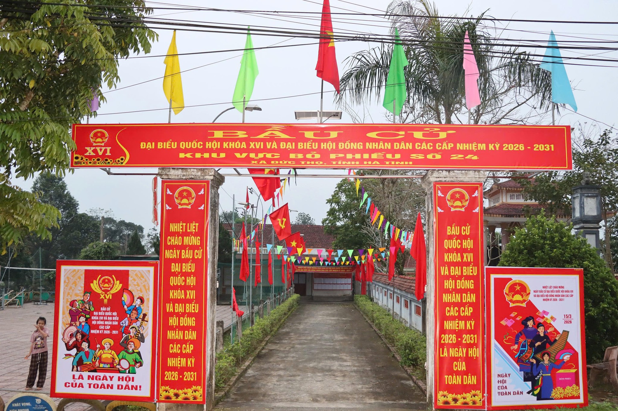 Đức Thọ: Rực rỡ cờ hoa hướng về ngày hội Đức Thanh07/03/2026A -A+Đức Thanh07/03/2026A -A+Những ngày này, khắp các thôn xóm, khu dân cư, khu vực bỏ phiếu của xã Đức Thọ đều đang rực rỡ cờ hoa, băng rôn, biểu ngữ hướng về ngày hội non sông