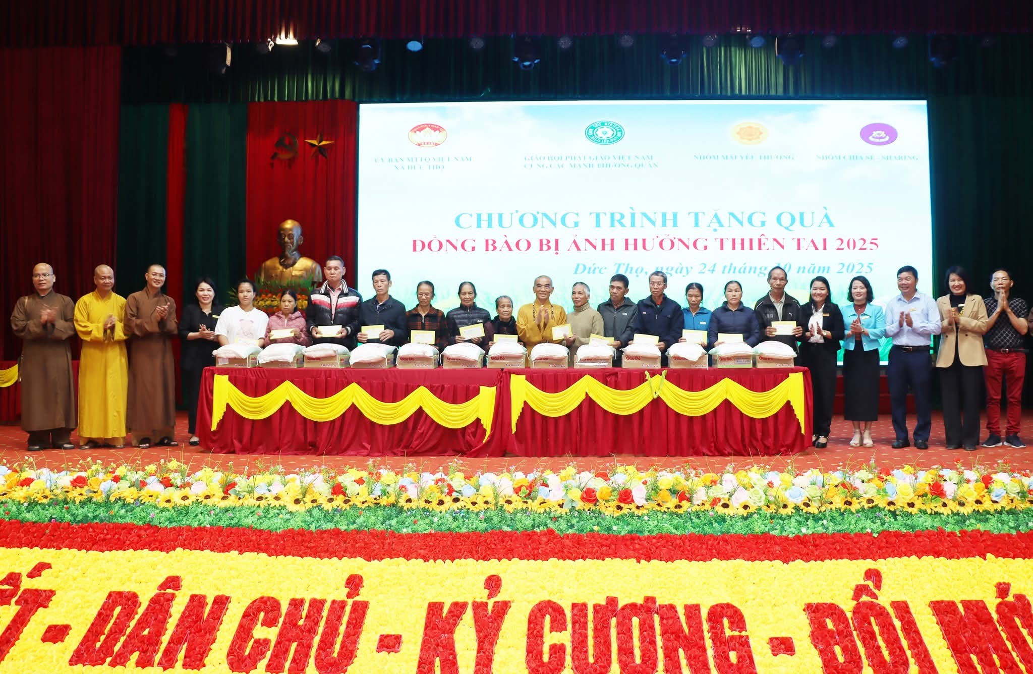 Sáng ngày 24/10/2025, Giáo hội Phật giáo Việt Nam cùng các doanh nghiệp, mạnh thường quân đã phối hợp với Ủy ban Mặt trận Tổ quốc Việt Nam xã Đức Thọ tổ chức chương trình trao quà hỗ trợ cho các hộ dân bị thiệt hại do cơn bão số 10 trên địa bàn xã.