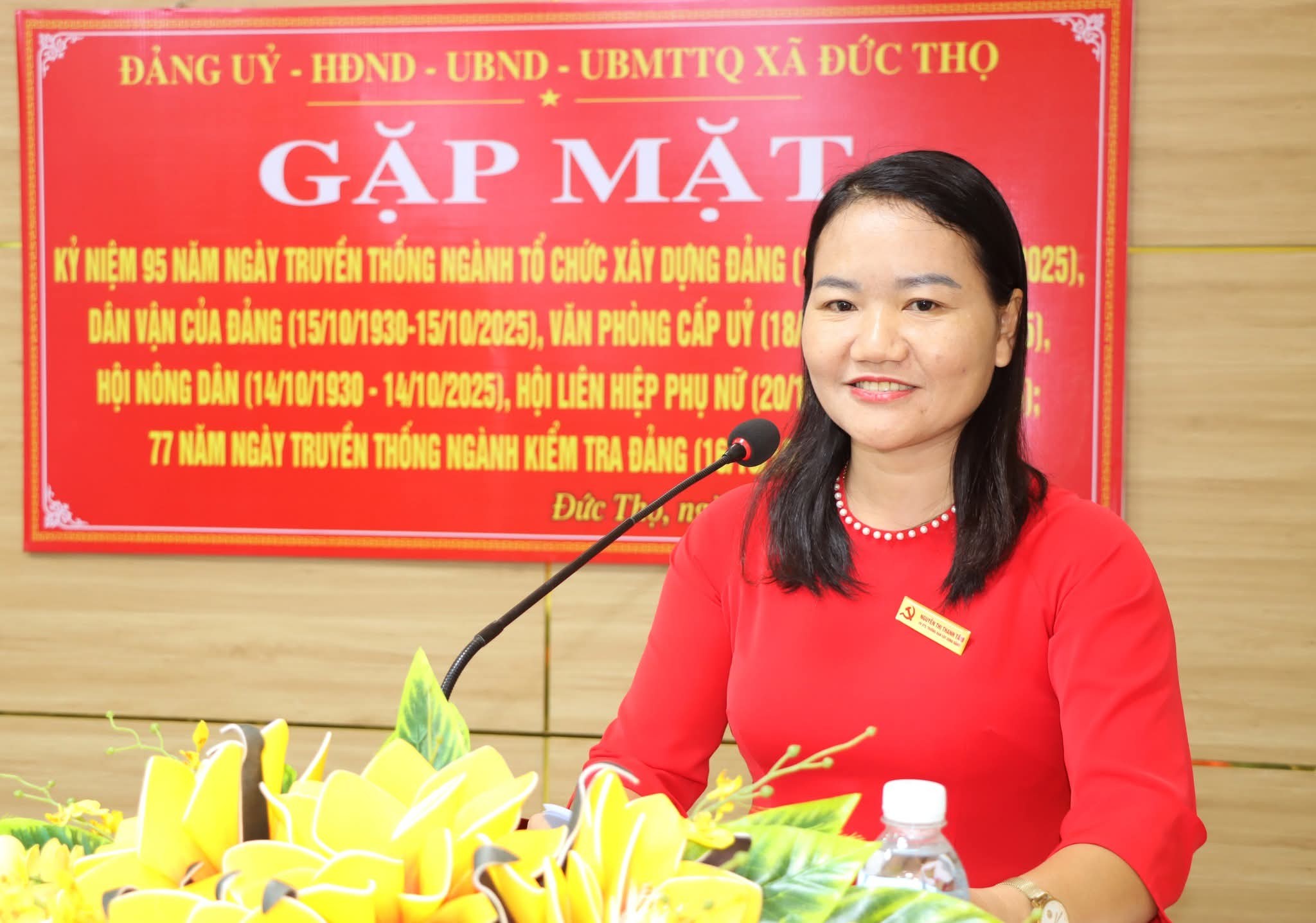 Phát biểu tại buổi lễ, đồng chí Trần Hoài Đức – Tỉnh ủy viên, Bí thư Đảng ủy, Chủ tịch HĐND xã Đức Thọ ghi nhận và biểu dương những nỗ lực, tinh thần trách nhiệm, sáng tạo của các ban, ngành, đoàn thể trong thời gian qua. Đồng chí đề nghị đội ngũ cán bộ, đảng viên, đoàn viên, hội viên tiếp tục phát huy truyền thống, nêu cao tinh thần gương mẫu, đổi mới phương thức hoạt động, góp phần xây dựng hệ thống chính trị vững mạnh, quê hương Đức Thọ ngày càng giàu đẹp, văn minh.