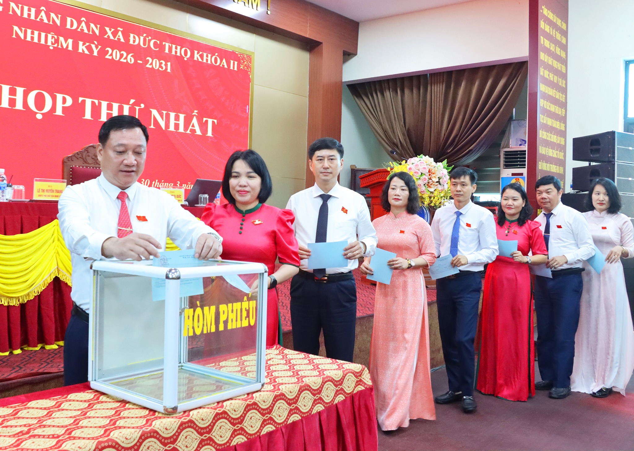 Với sự thống nhất, tín nhiệm của 100% đại biểu dự họp, HĐND xã đã bầu Ông Trần Hoài Đức, Bí thư Đảng ủy, Chủ tịch HĐND xã khóa I, nhiệm kỳ 2021-2026 giữ chức Chủ tịch HĐND xã khóa II, nhiệm kỳ 2026-2031;