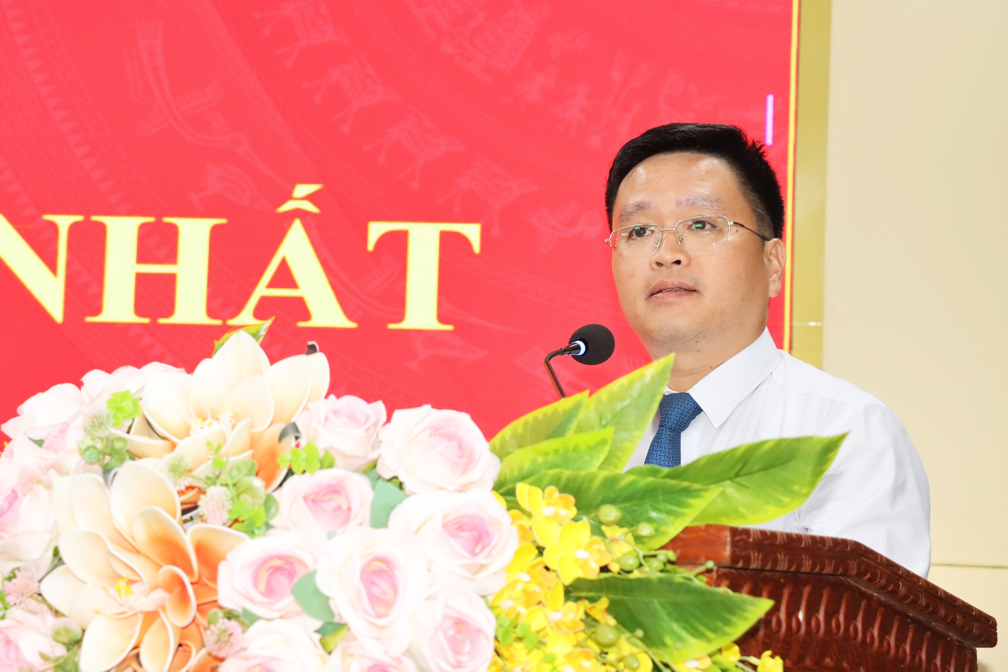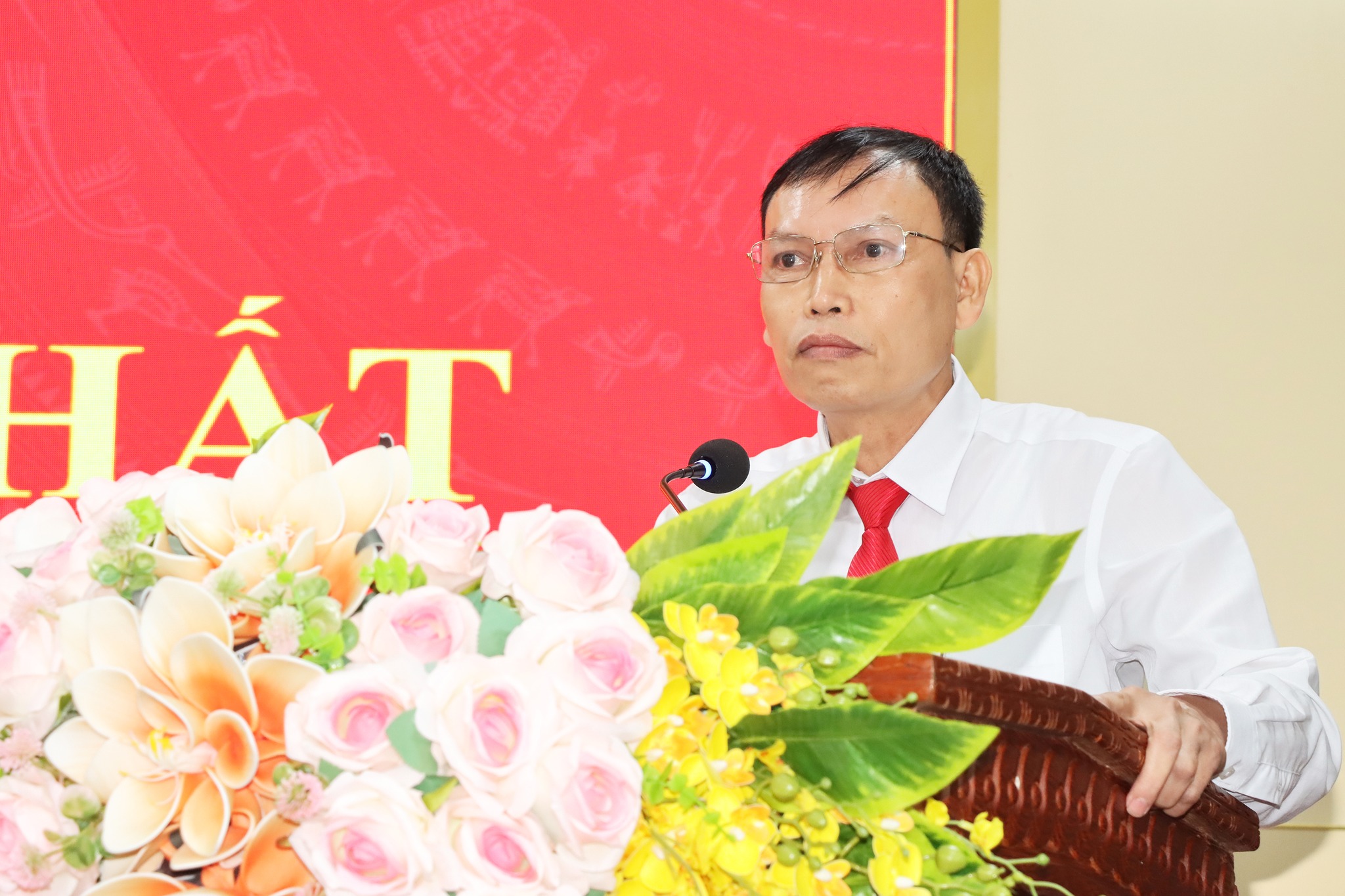 Tặng hoa chúc mừng ông Trần Hoài Đức, Chủ tịch HĐND xã và các chức danh HĐND