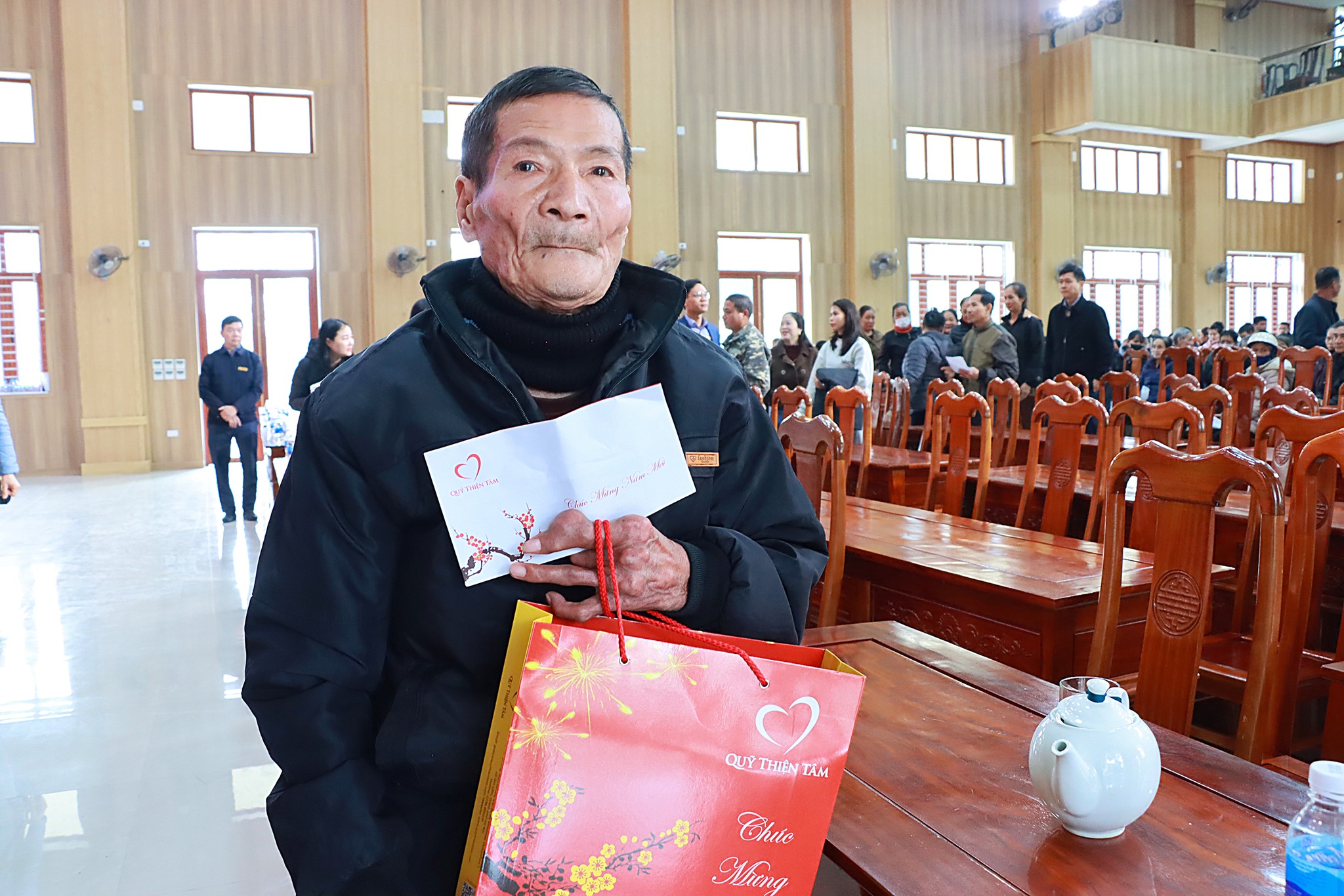 lãnh đạo xã đã trực tiếp thăm hỏi và trao tận tay 300 trăm suất quà cho bà con. Mỗi phần quà bao gồm 1 túi quà và 500.000 đồng tiền mặt hỗ trợ. Giá trị vật chất của mỗi suất quà không quá lớn, nhưng đó là tấm lòng, là sự sẻ chia kịp thời của các cấp chính quyền và cộng đồng đối với những mảnh đời còn nhiều vất vả.