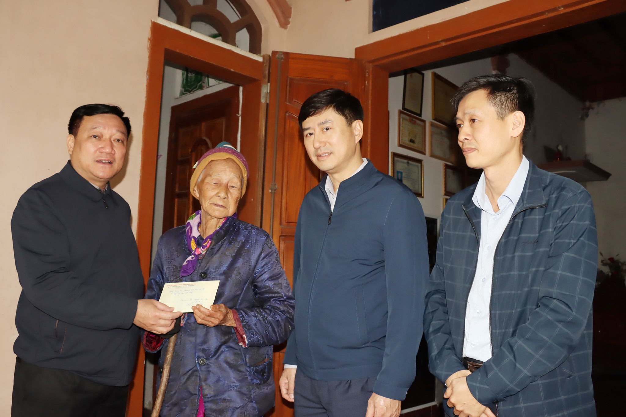 Lãnh đạo xã Đức Tho thăm trao quà Mẹ Việt Nam anh hùng tại thôn Trẫm Bàng.