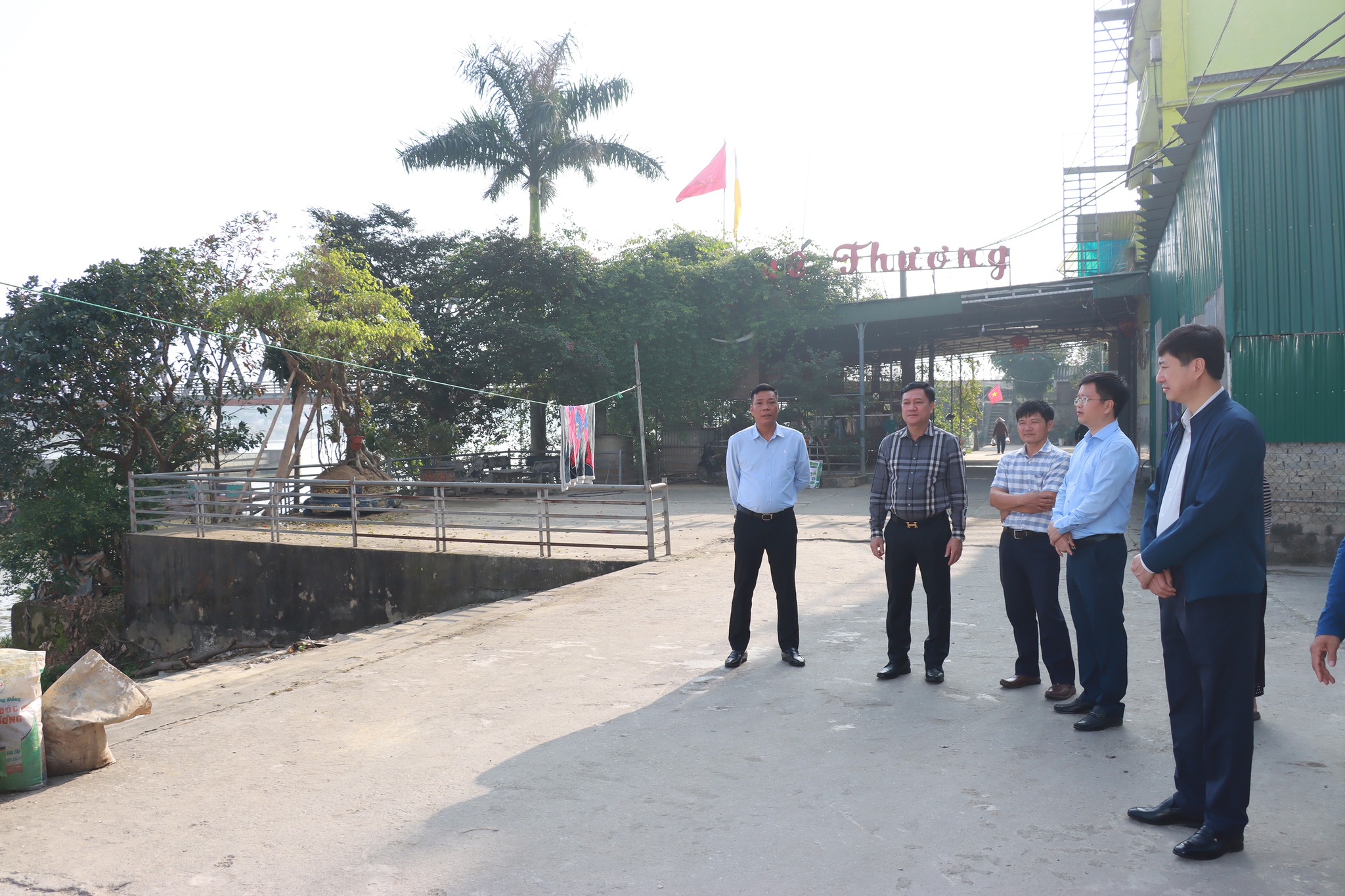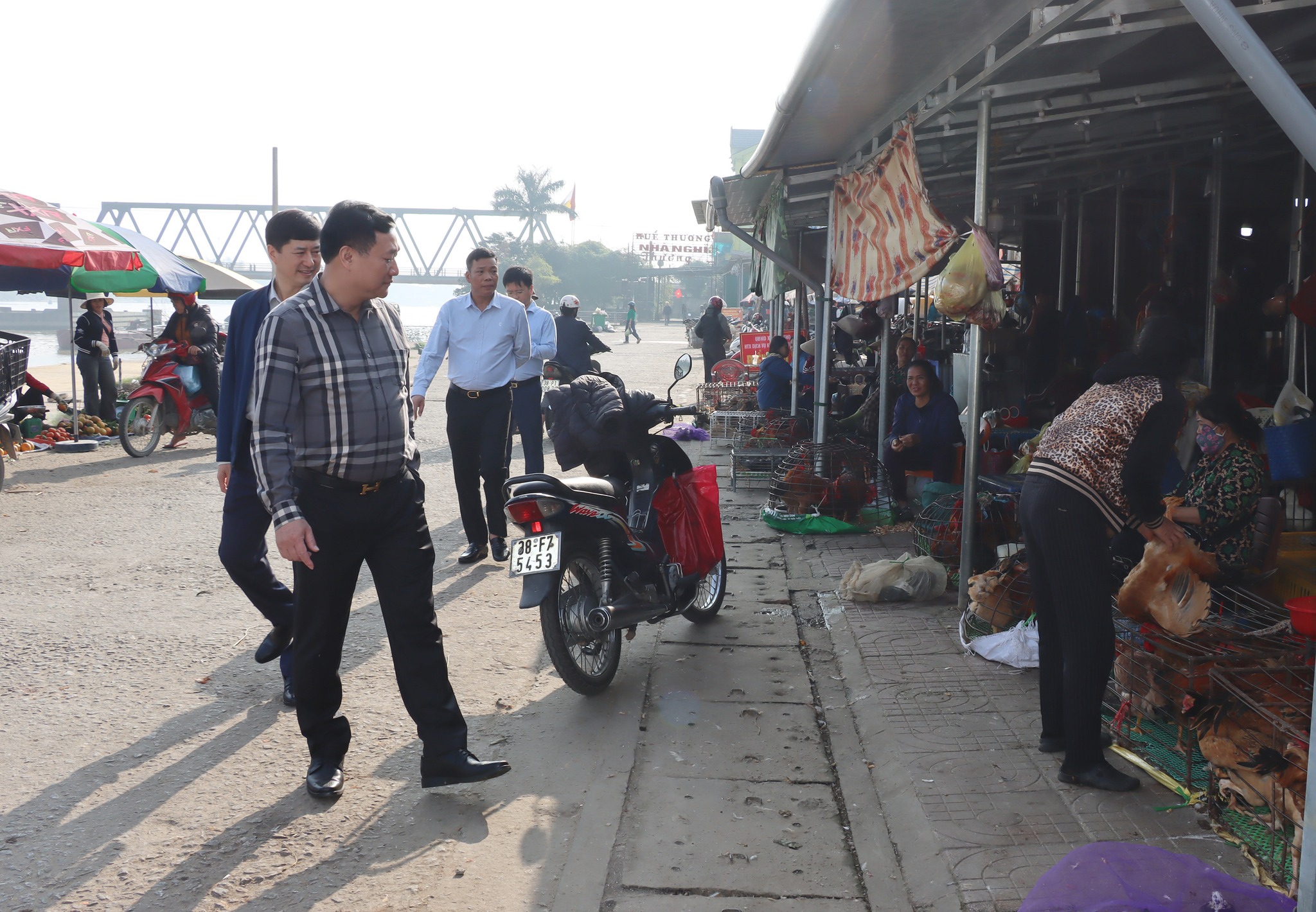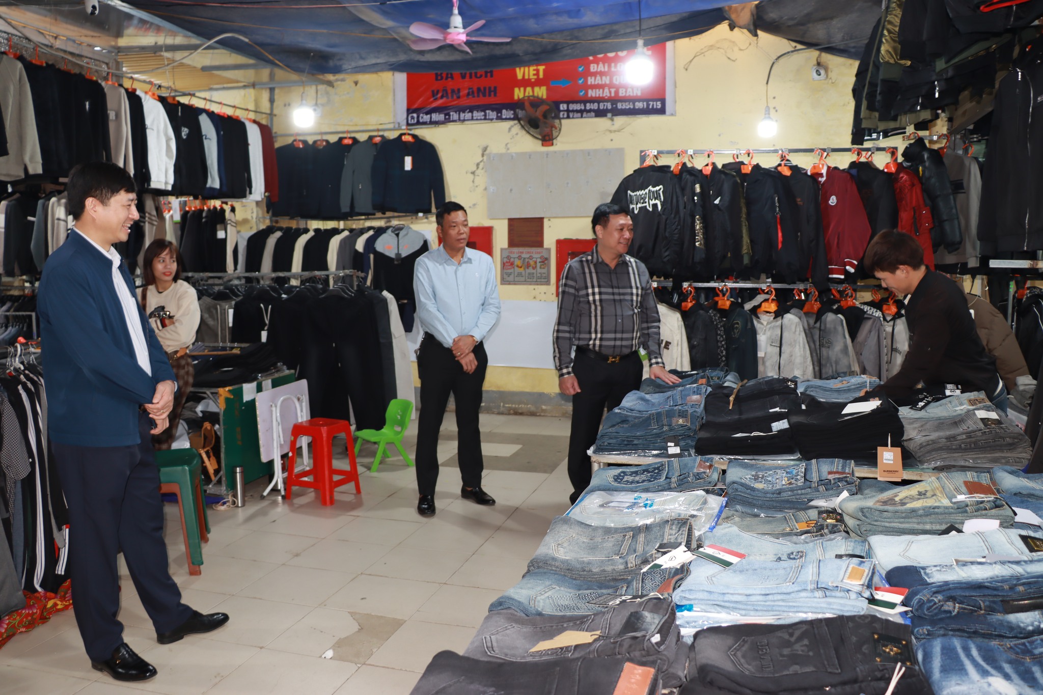 Đồng chí Trần Hoài Đức, Bí thư Đảng ủy và các đồng chí cùng đi kiểm tra khu vực chợ trời...