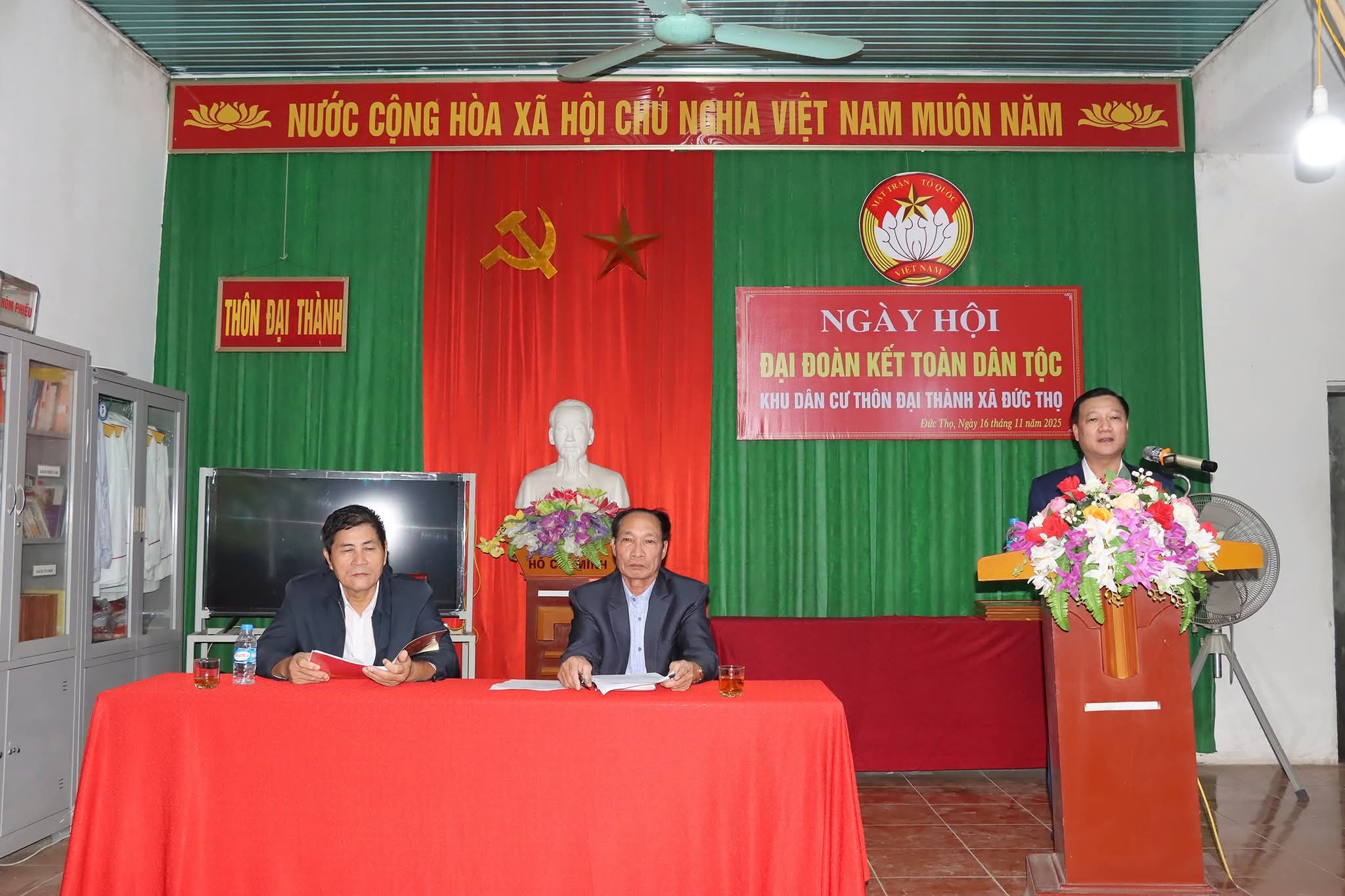 Chiều 16/11, đồng chí Trần Hoài Đức – Tỉnh uỷ viên, Bí thư Đảng uỷ, Chủ tịch HĐND xã và đồng chí Đường Thị Phú – Phó Bí thư Thường trực Đảng uỷ, Đồng chí Bùi Ngọc Nhật - Chủ tịch UBND xã đã đến dự Ngày hội Đại đoàn kết toàn dân tộc năm 2025 tại các thôn