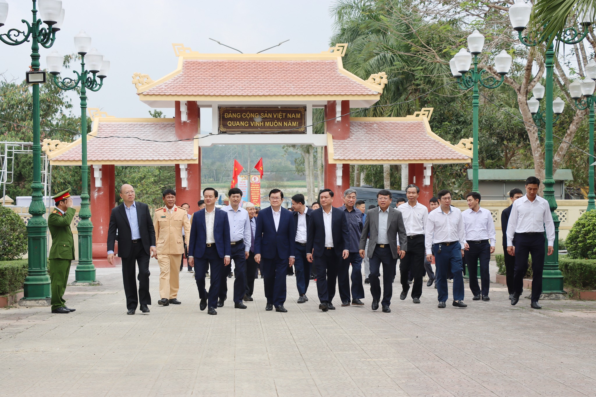 Nguyên Chủ tịch nước Trương Tấn Sang, lãnh đạo tỉnh, xã Đức Thọ đến dâng hương khu mộ cố Tổng Bí thư Trần Phú.