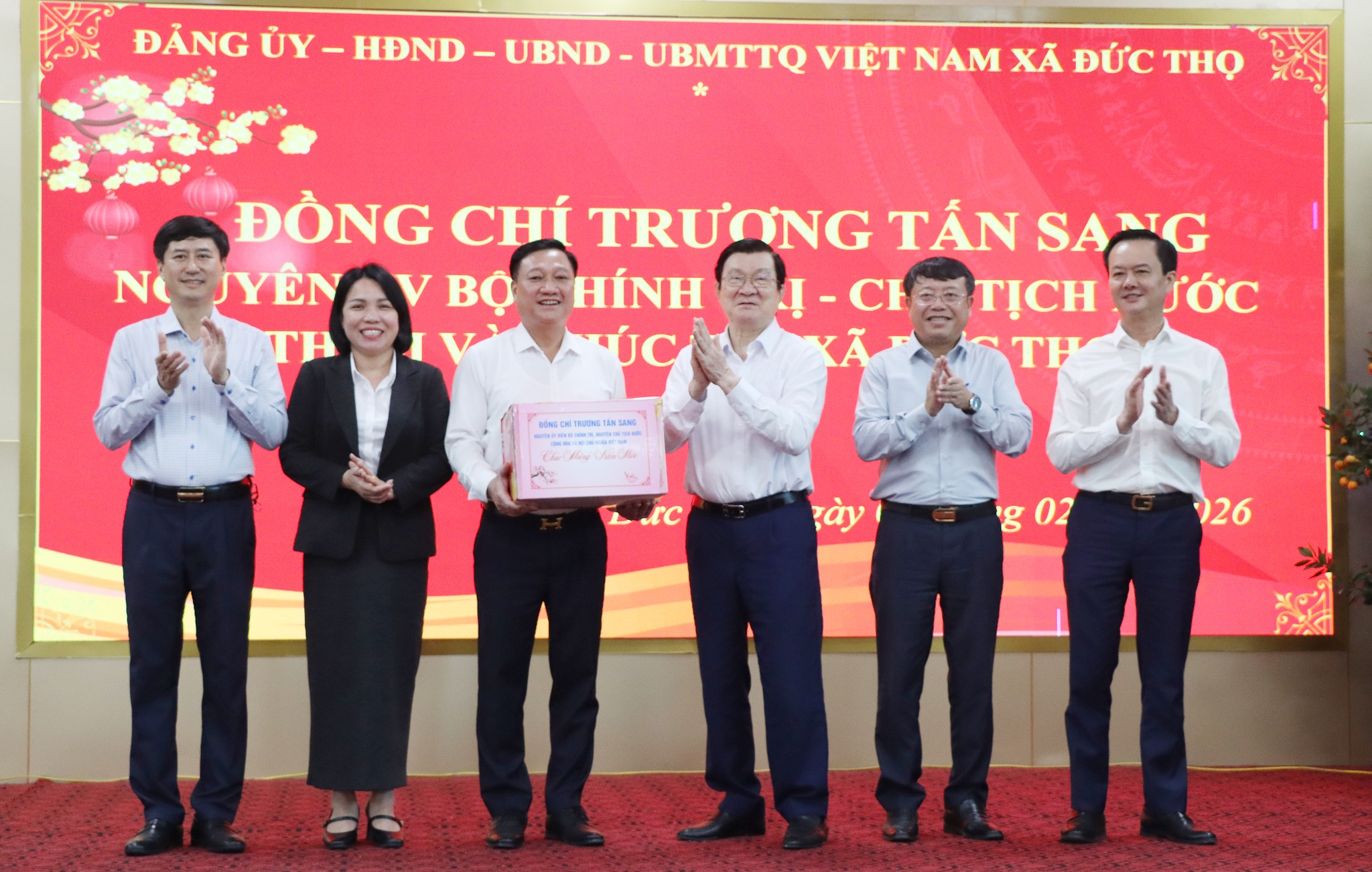 Nhân dịp chuẩn bị đón tết cổ truyền dân tộc, nguyên Chủ tịch nước Trương Tấn Sang tặng quà, chúc Đảng bộ, Nhân dân xã Đức Thọ đón Tết vui tươi, ấm áp.