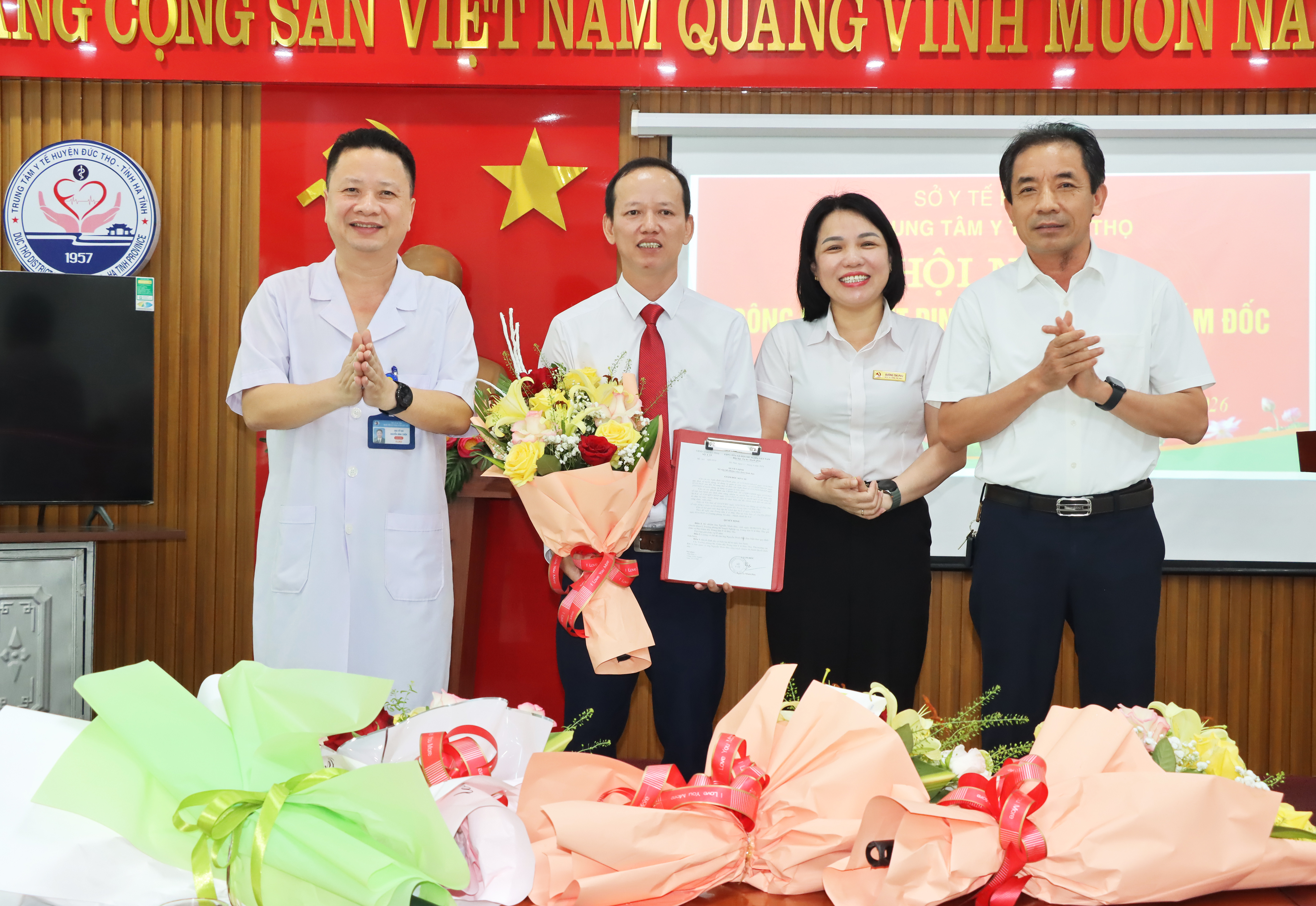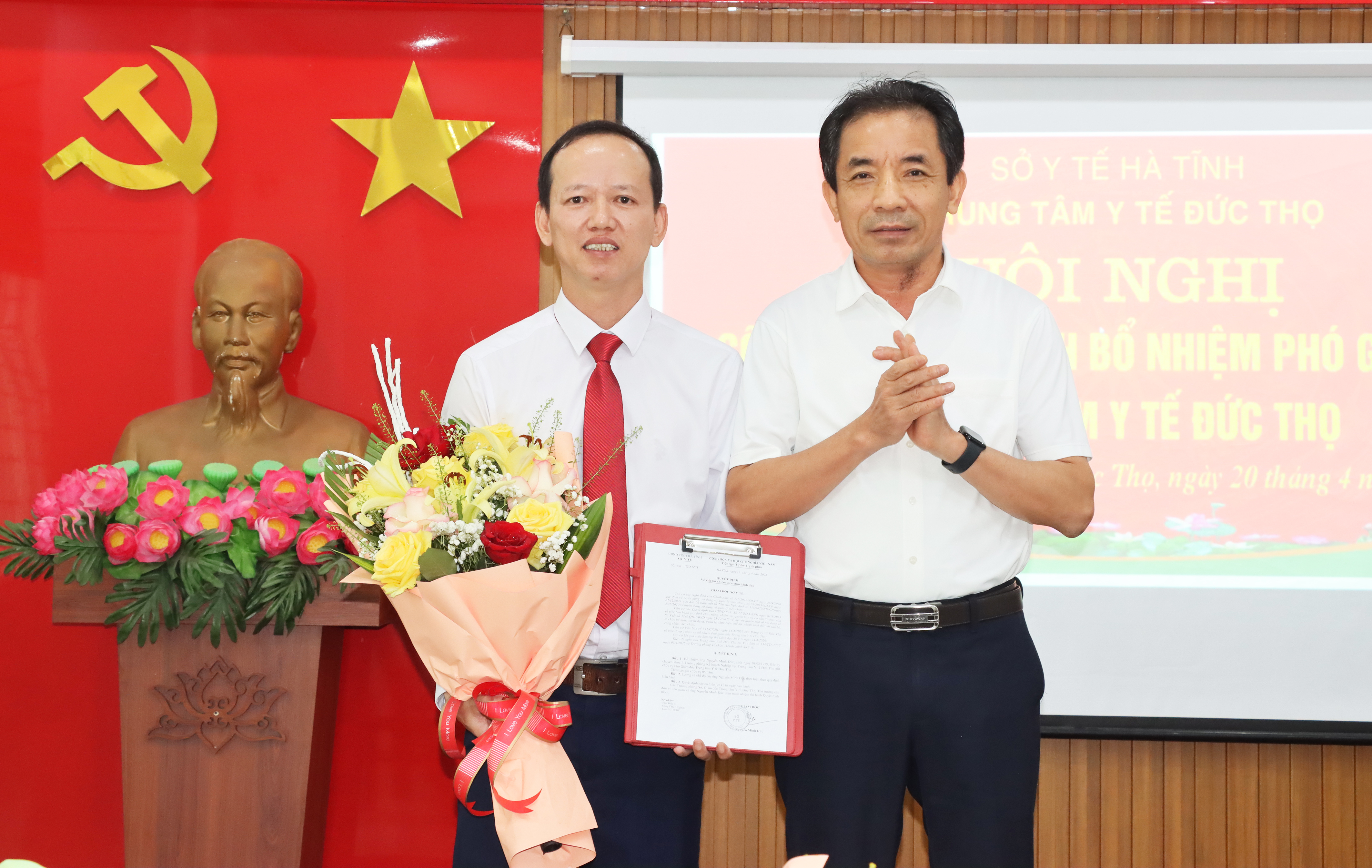 Đồng chí: Lê Chánh Thành, Phó Giám đốc Sở Y tế Hà Tĩnh trao quyết định bổ nhiệm đồng chí Nguyễn Minh Đức giữ chức vụ Phó Giám đốc Trung tâm Y tế Đức Thọ .