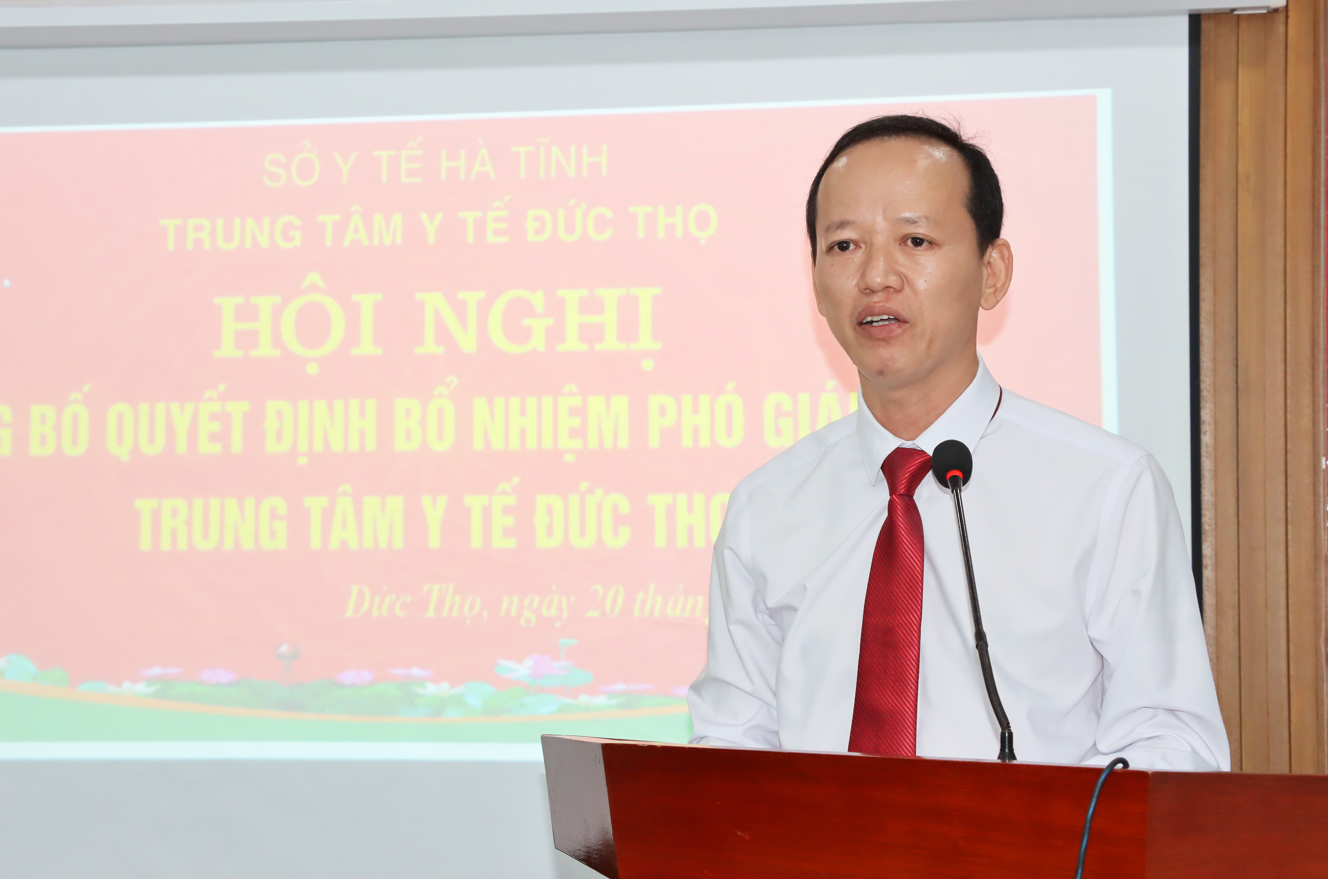 Tại Lễ công bố, đồng chí Lê Chánh Thành, Phó Giám đốc Sở Y tế Hà Tĩnh đã trao quyết định và giao nhiệm vụ cho đồng chí Nguyễn Minh Đức, đồng thời mong muốn trên cương vị mới đồng chí cố gắng cùng tập thể lãnh đạo cán bộ viên chức Trung tâm Y tế Đức Thọ nâng cao chất lượng công tác chăm sóc và bảo vệ sức khỏe nhân dân. Phát huy vai trò của mình để xây dựng Trung tâm Y tế Đức Thọ trở thành một khối đoàn kết thống nhất, hoàn thành xuất sắc nhiệm vụ được giao.