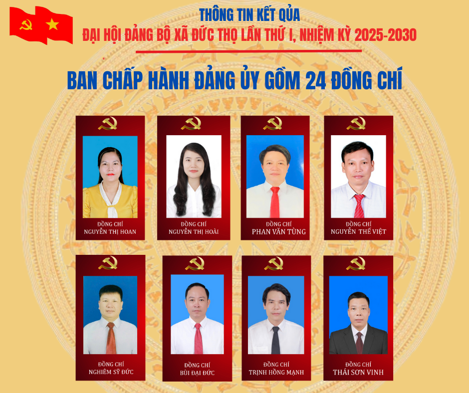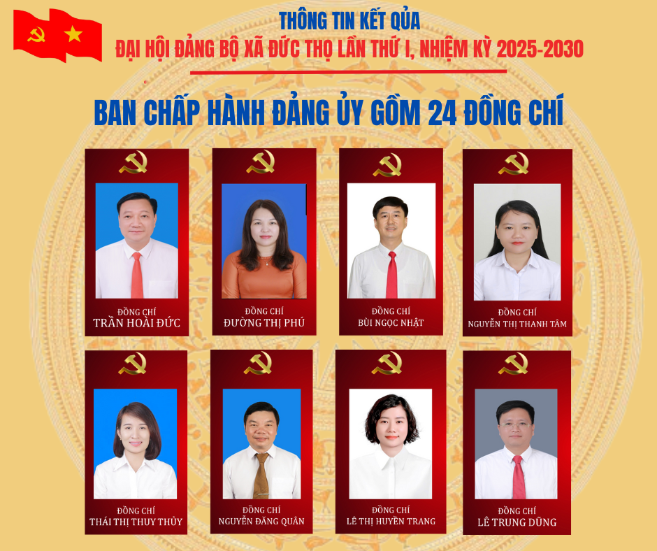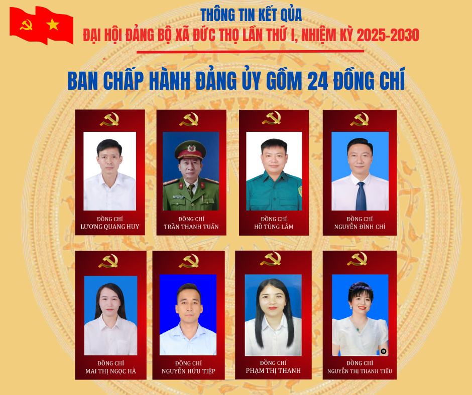 Thông tin kết quả Đại hội Đảng bộ xã Đức Thọ lần thứ I, nhiệm kỳ 2025 -2030Ẩn danh13/08/2025A -A+Ẩn danh13/08/2025A -A+Thông tin kết quả Đại hội Đảng bộ xã Đức Thọ lần thứ I, nhiệm kỳ 2025 -2030 File đính kèm1...jpg