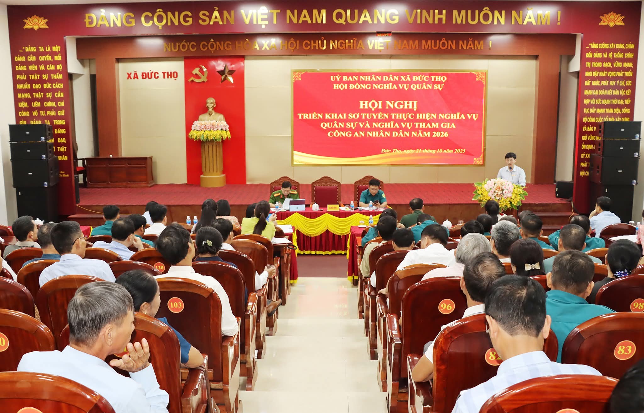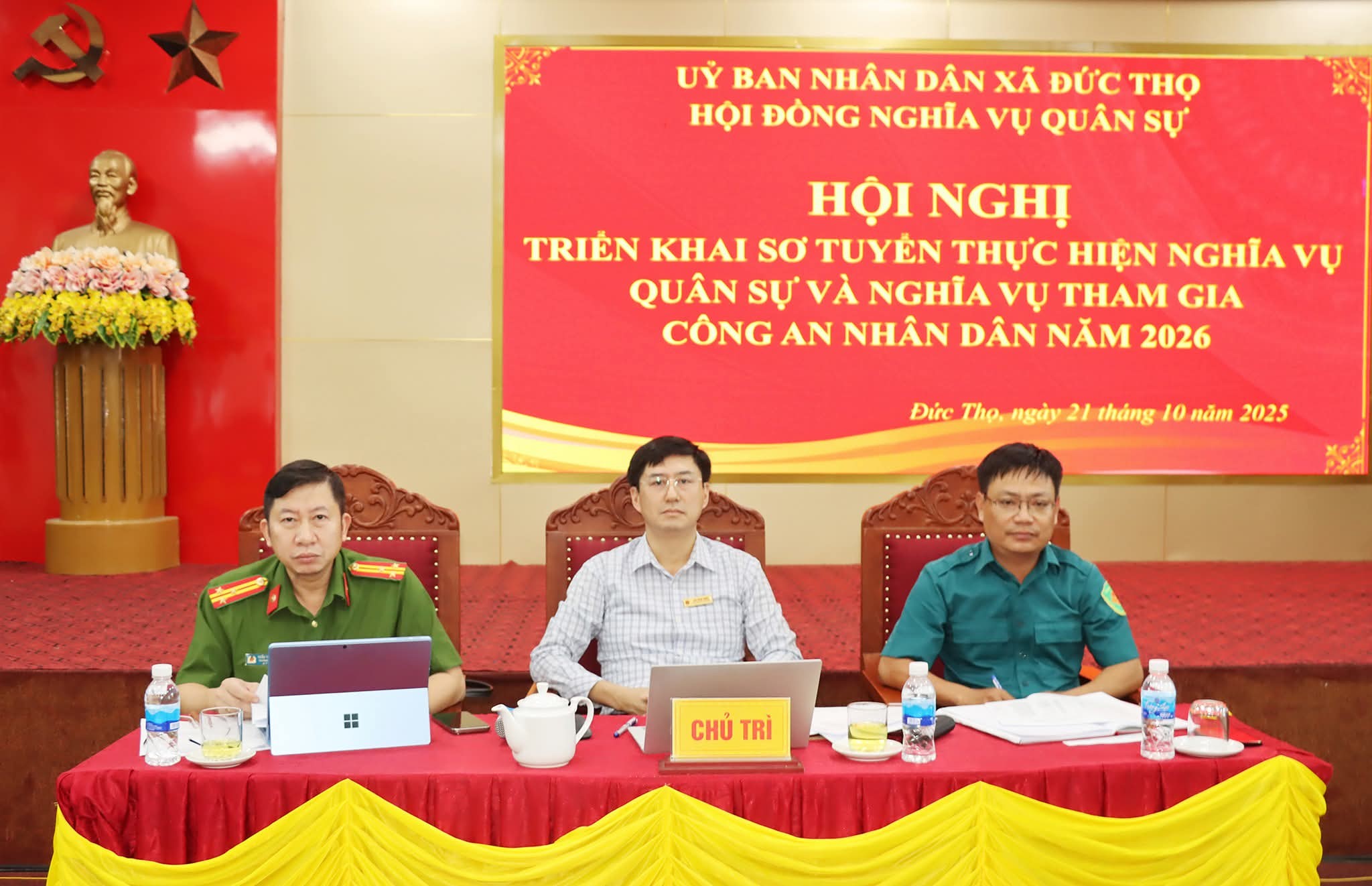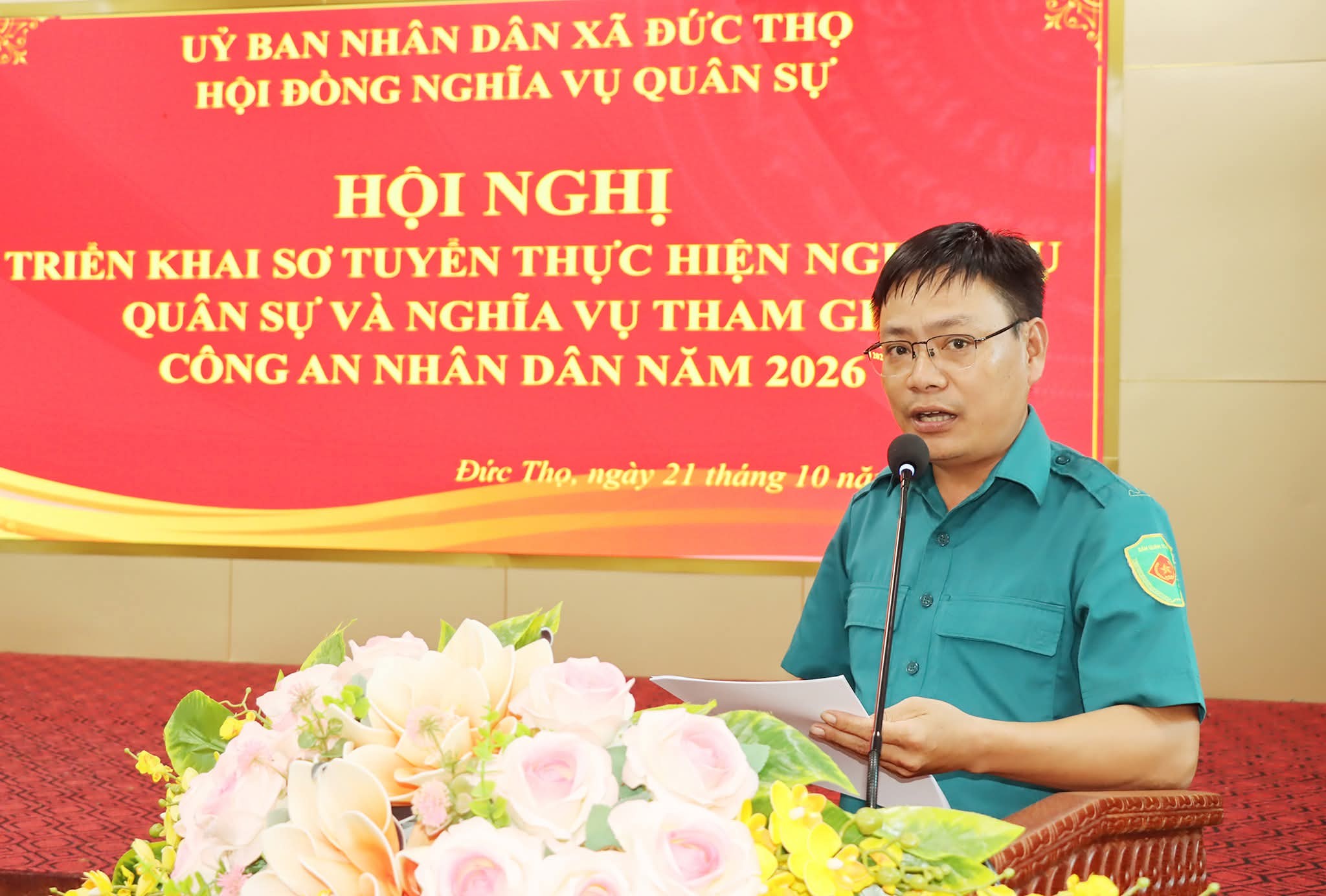 Chiều nay (21/10), Hội đồng Nghĩa vụ Quân sự xã Đức Thọ tổ chức hội nghị triển khai công tác sơ tuyển nghĩa vụ Quân sự và nghĩa vụ tham gia Công an nhân dân năm 2026.