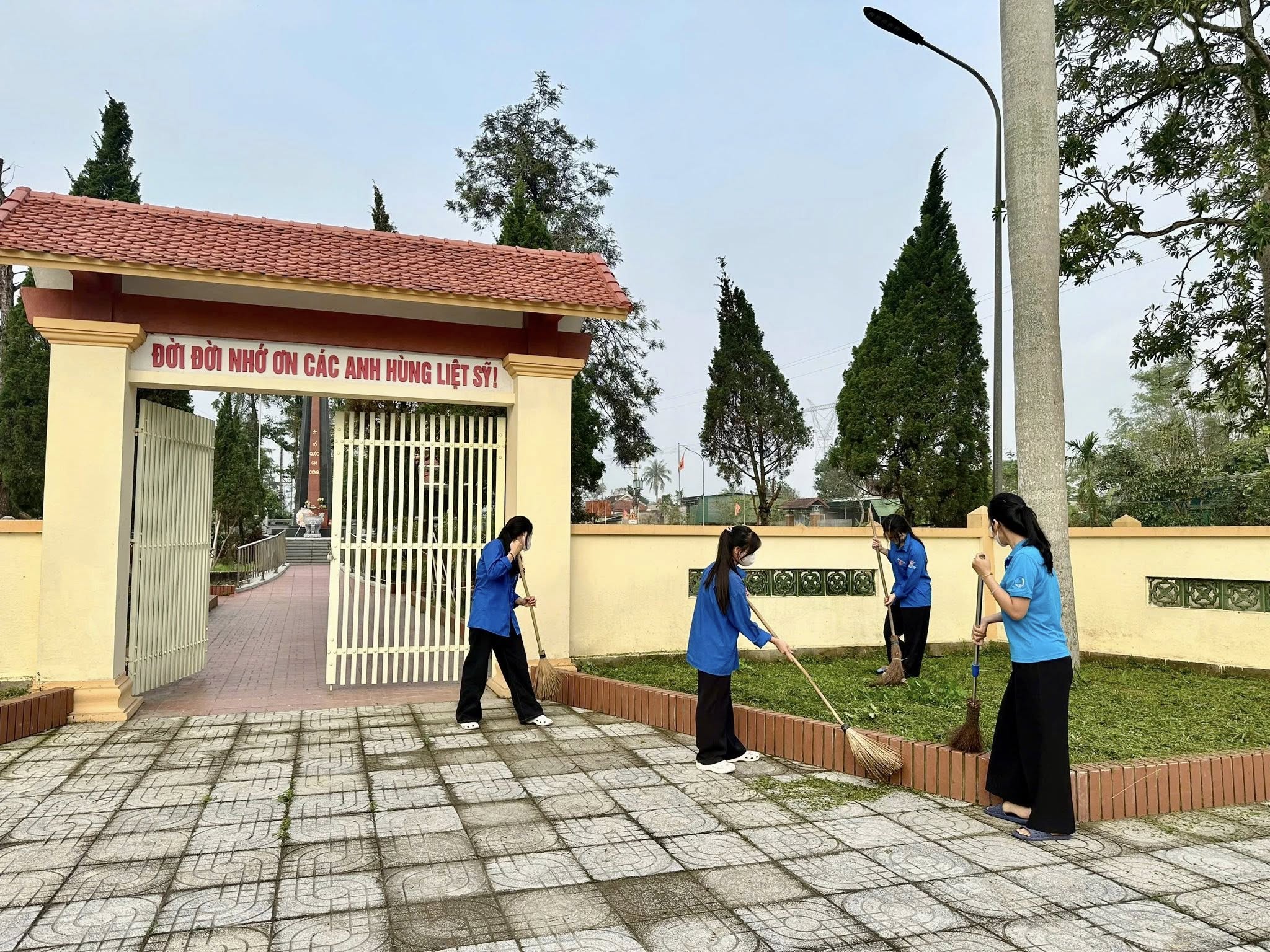 Tích cực tham gia vệ sinh môi trường tại các nhà bia ghi tên các anh hùng liệt sĩ