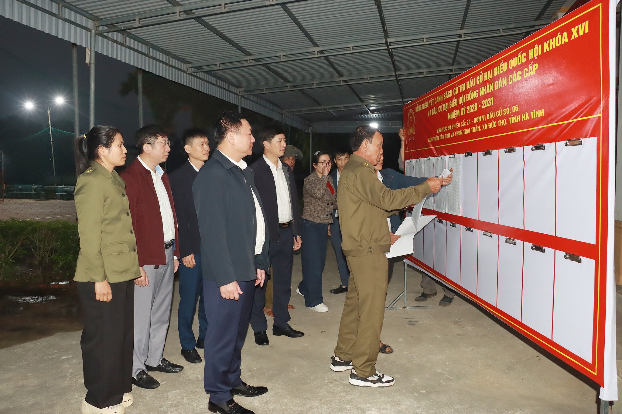 Ngay sau cuộc họp các đồng chí lãnh đạo trong Ban bầu cử đã đi kiểm tra công tác Niêm yết danh sách cử tri tại đơn vị bầu cử số 6.