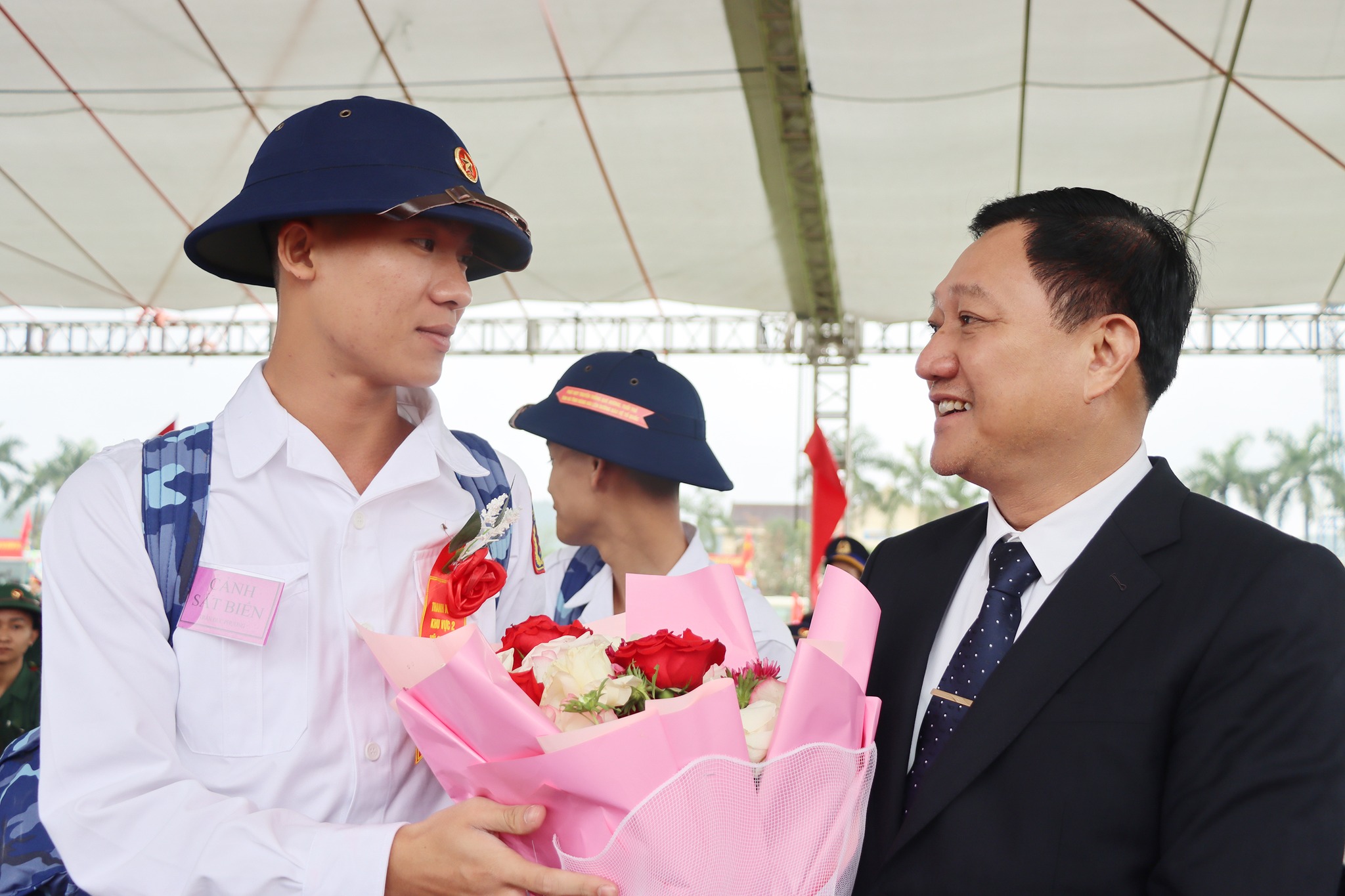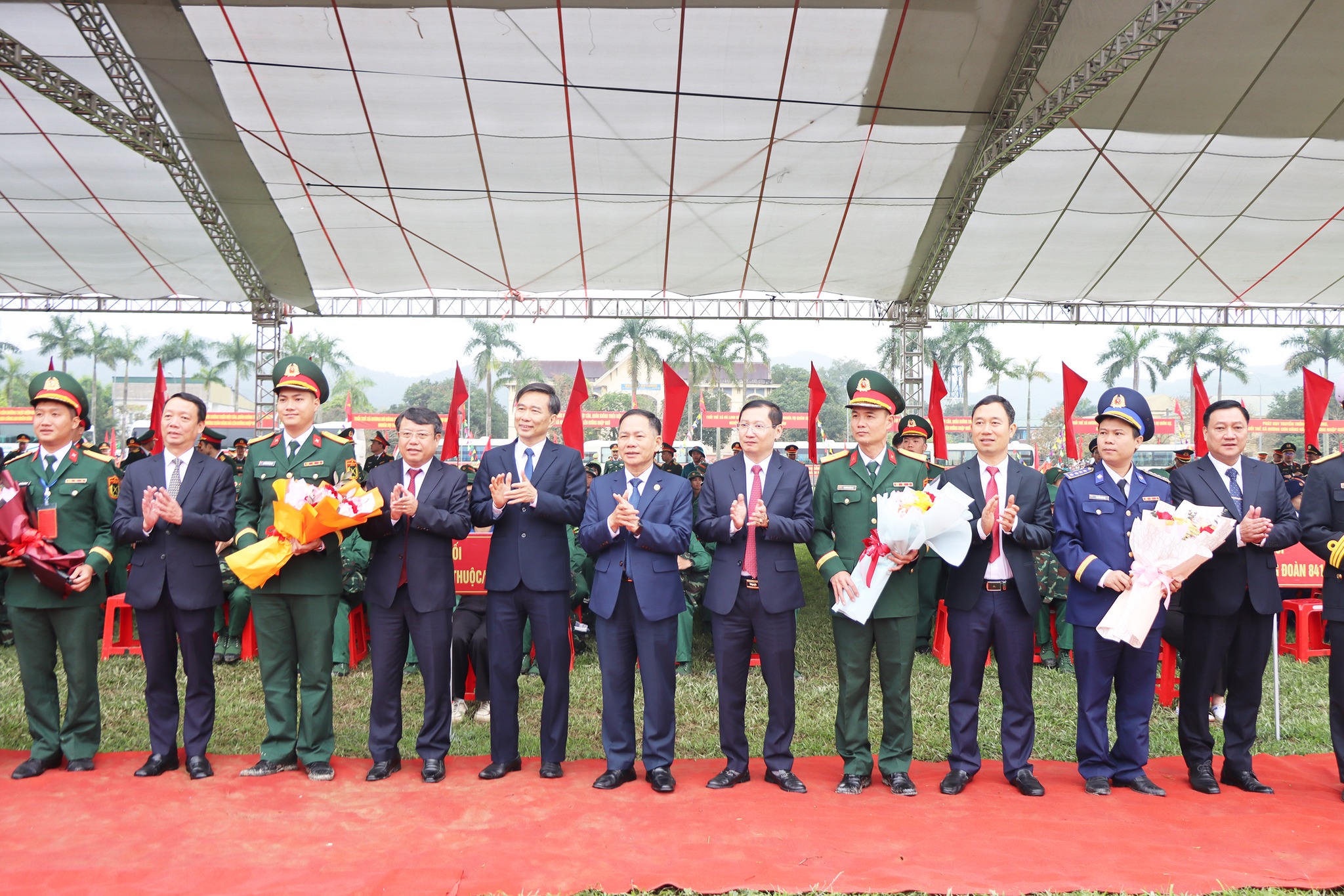 Các đồng chí lãnh đạo tỉnh tặng hoa đơn vị nhận quân