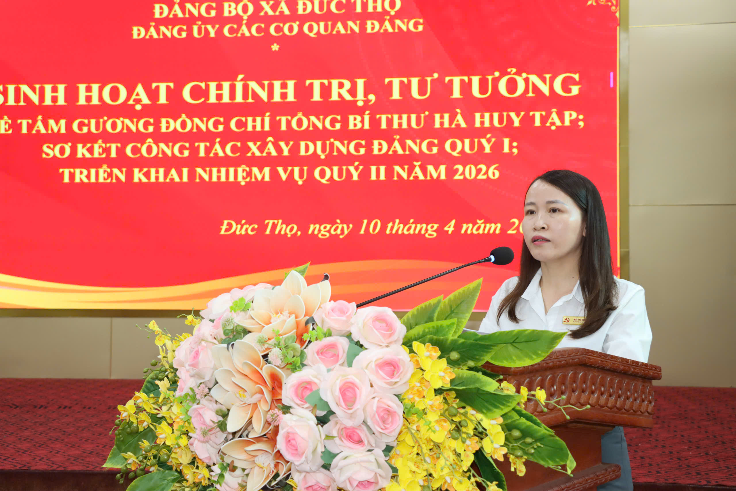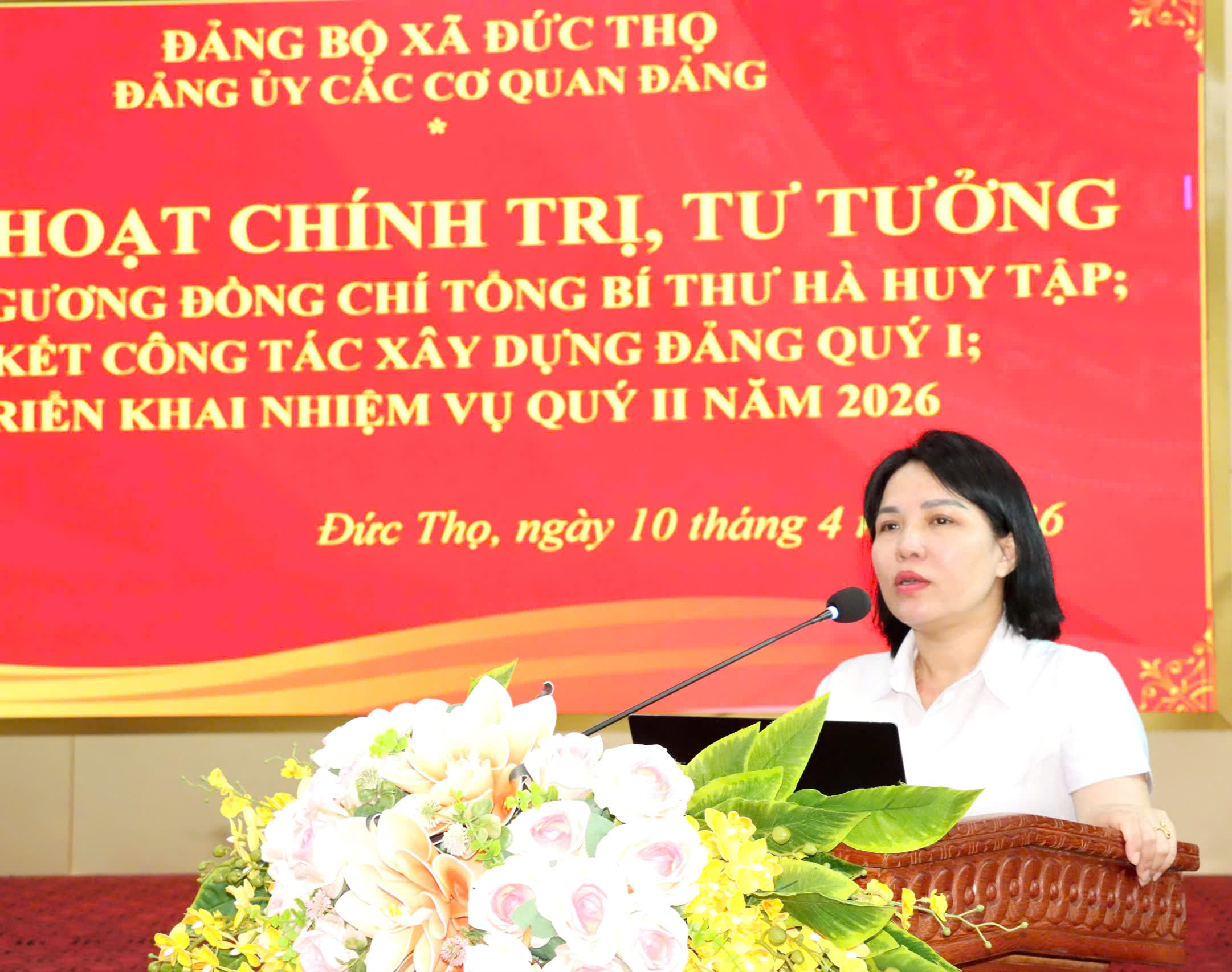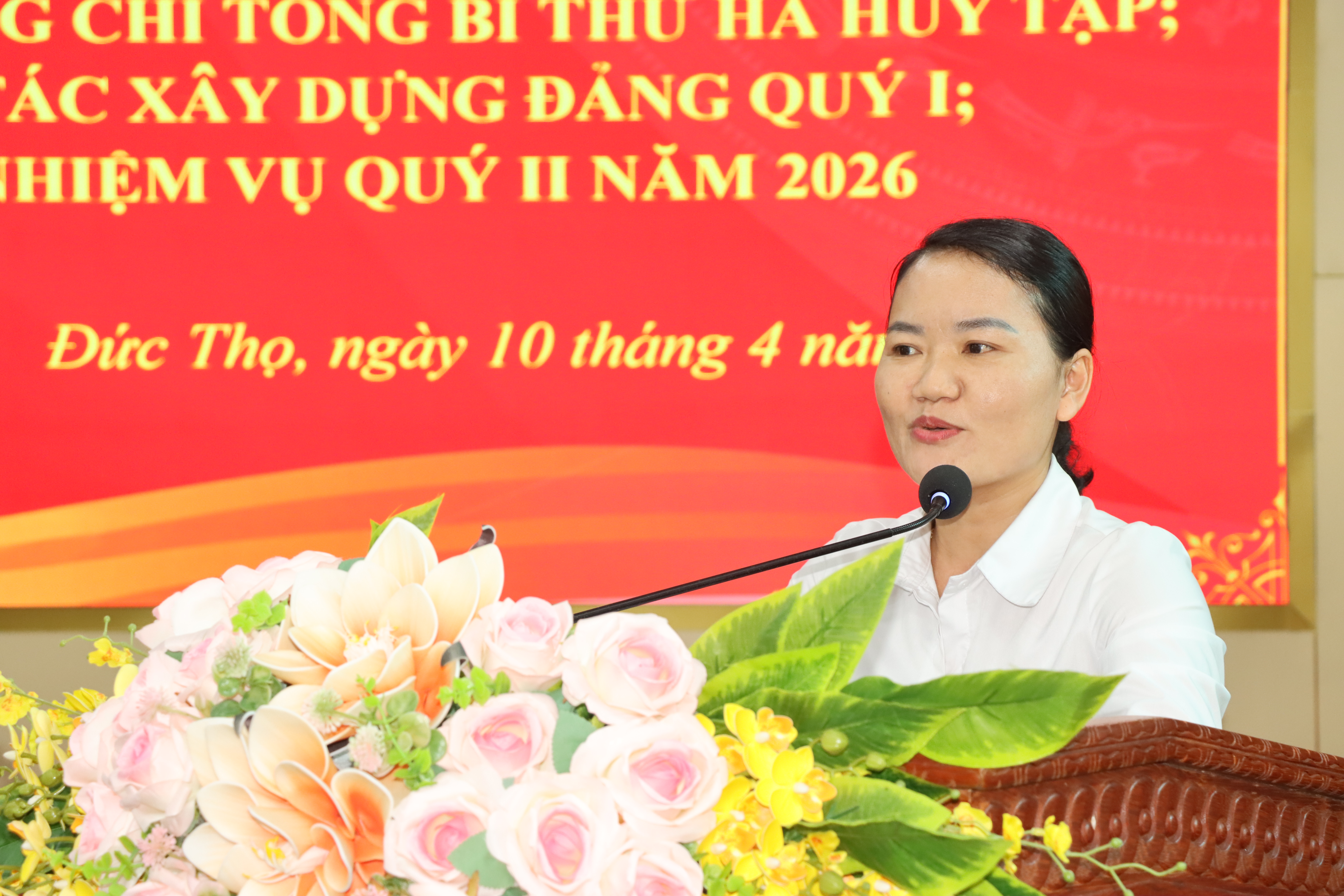 Đồng chí Đường Thị Phú – Phó Bí thư Thường trực Đảng ủy xã, Bí thư Đảng ủy các Cơ quan Đảng , Thủ trưởng cơ quan Đảng xã tiếp thu ý kiến chỉ đạo của đồng chí Bí thư Đảng ủy xã và triển khai các nhiệm vụ trọng tâm quý II năm 2026 của Đảng ủy các Cơ quan Đảng.