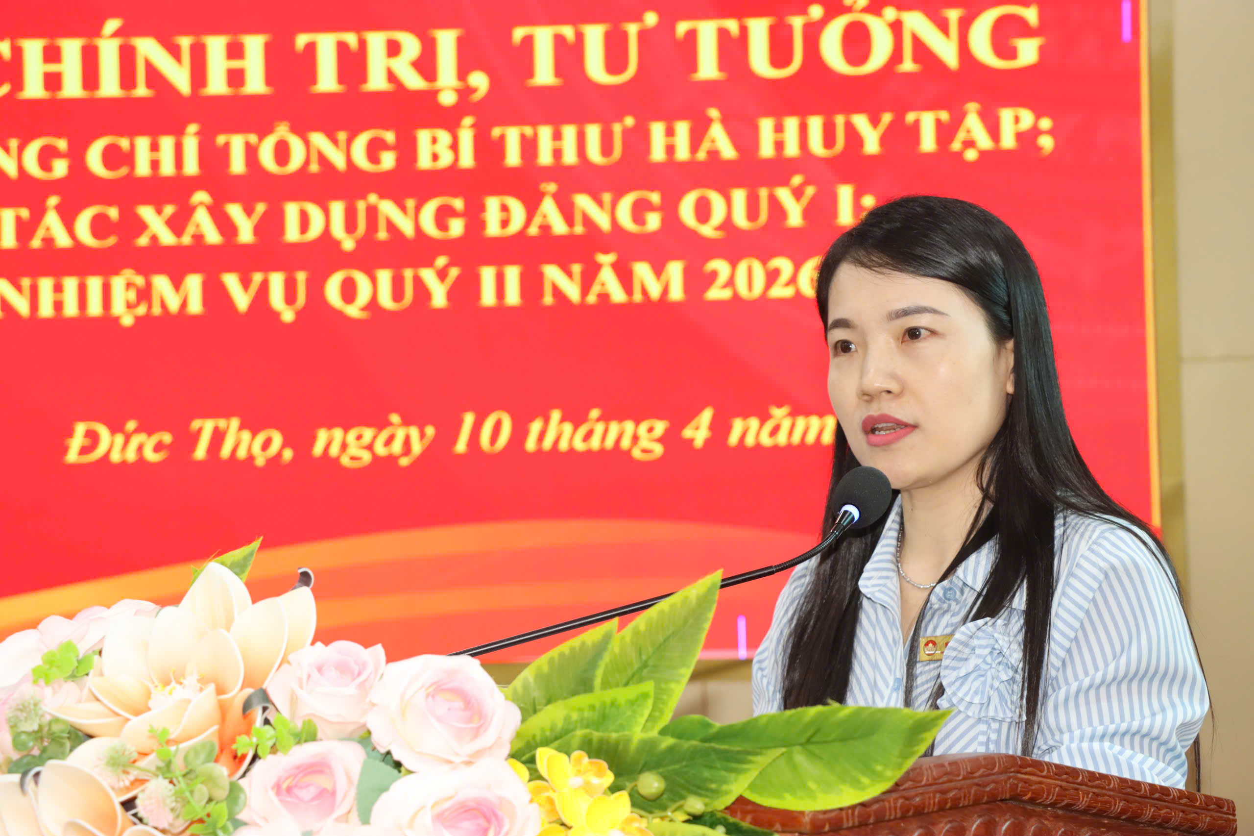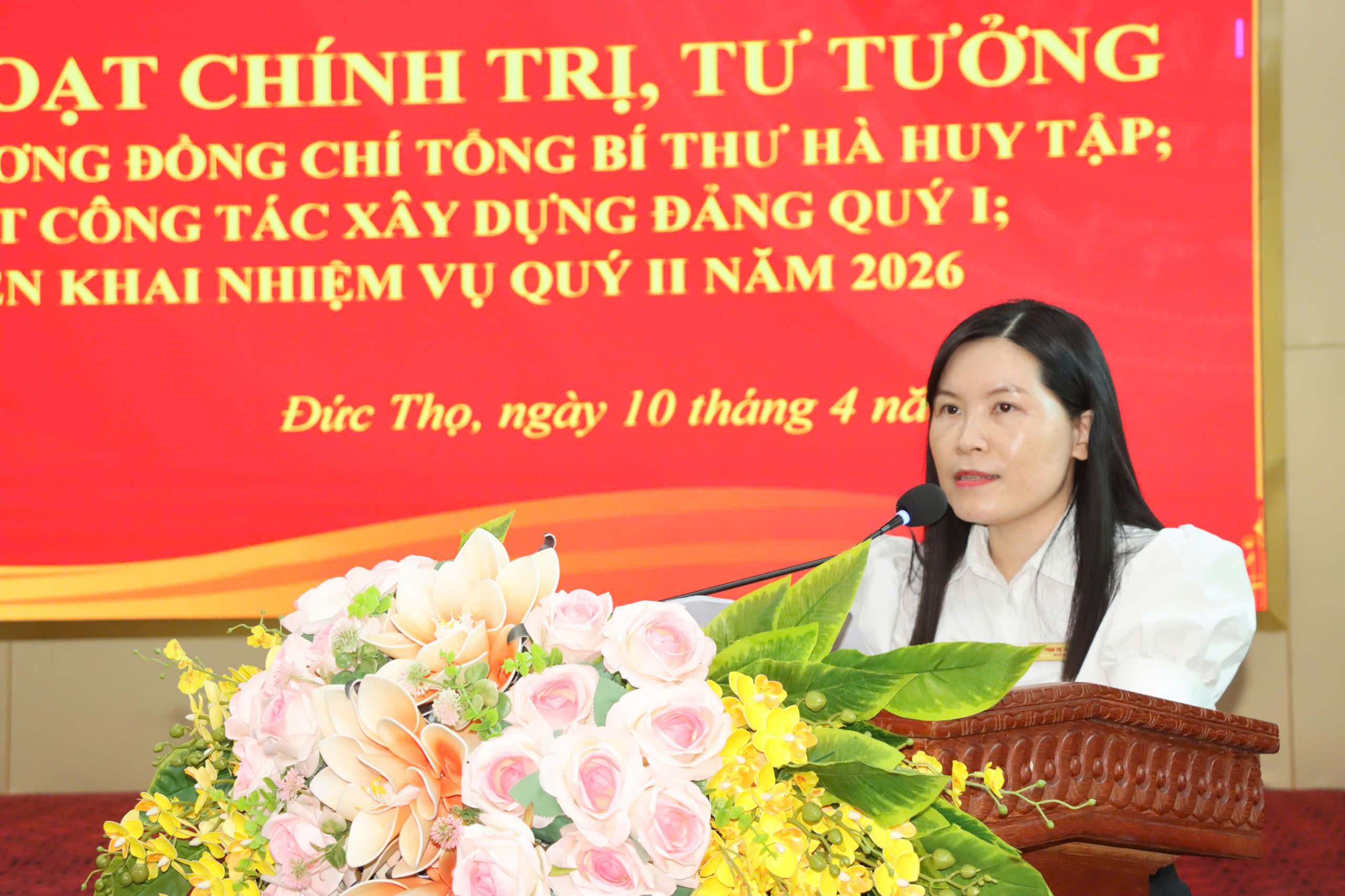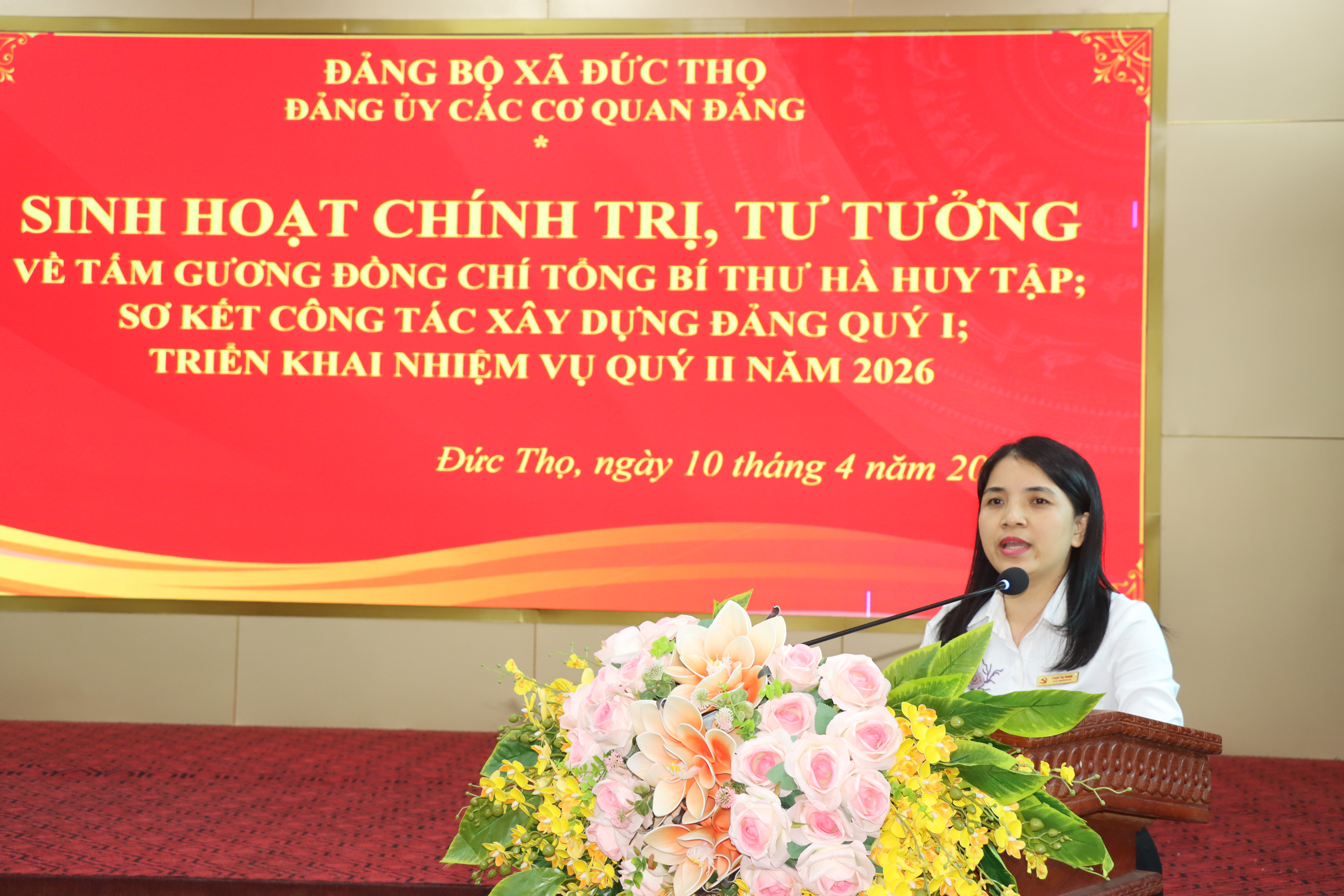 Đồng chí Đường Thị Phú – Phó Bí thư Thường trực Đảng ủy xã, Bí thư Đảng ủy các Cơ quan Đảng , Thủ trưởng cơ quan Đảng xã tiếp thu ý kiến chỉ đạo của đồng chí Bí thư Đảng ủy xã và triển khai các nhiệm vụ trọng tâm quý II năm 2026 của Đảng ủy các Cơ quan Đảng.