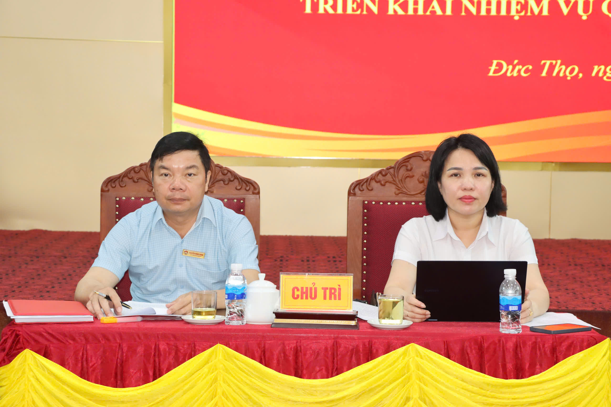 Đồng chí Đường Thị Phú - Phó Bí thư Thường trực Đảng ủy - Bí thư Đảng bộ các Cơ quan Đảng; Đồng chí Nguyễn Đăng Quân - Chủ tịch Ủy ban MTTQ - Phó Bí Thư Đảng ủy các Cơ quan Đảng chủ trì buổi sinh hoạt chuyên đề.