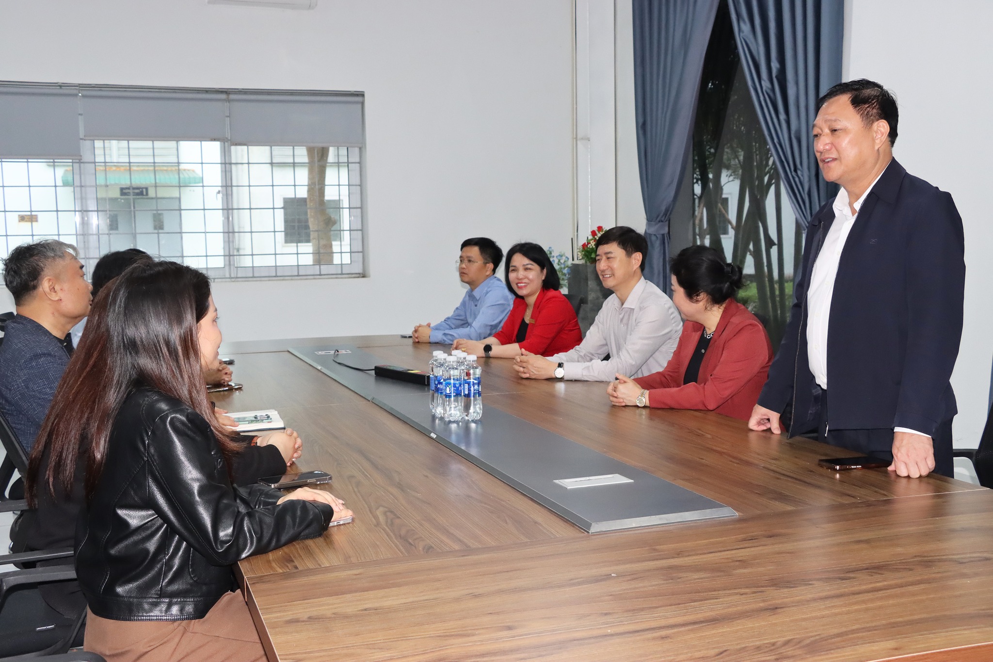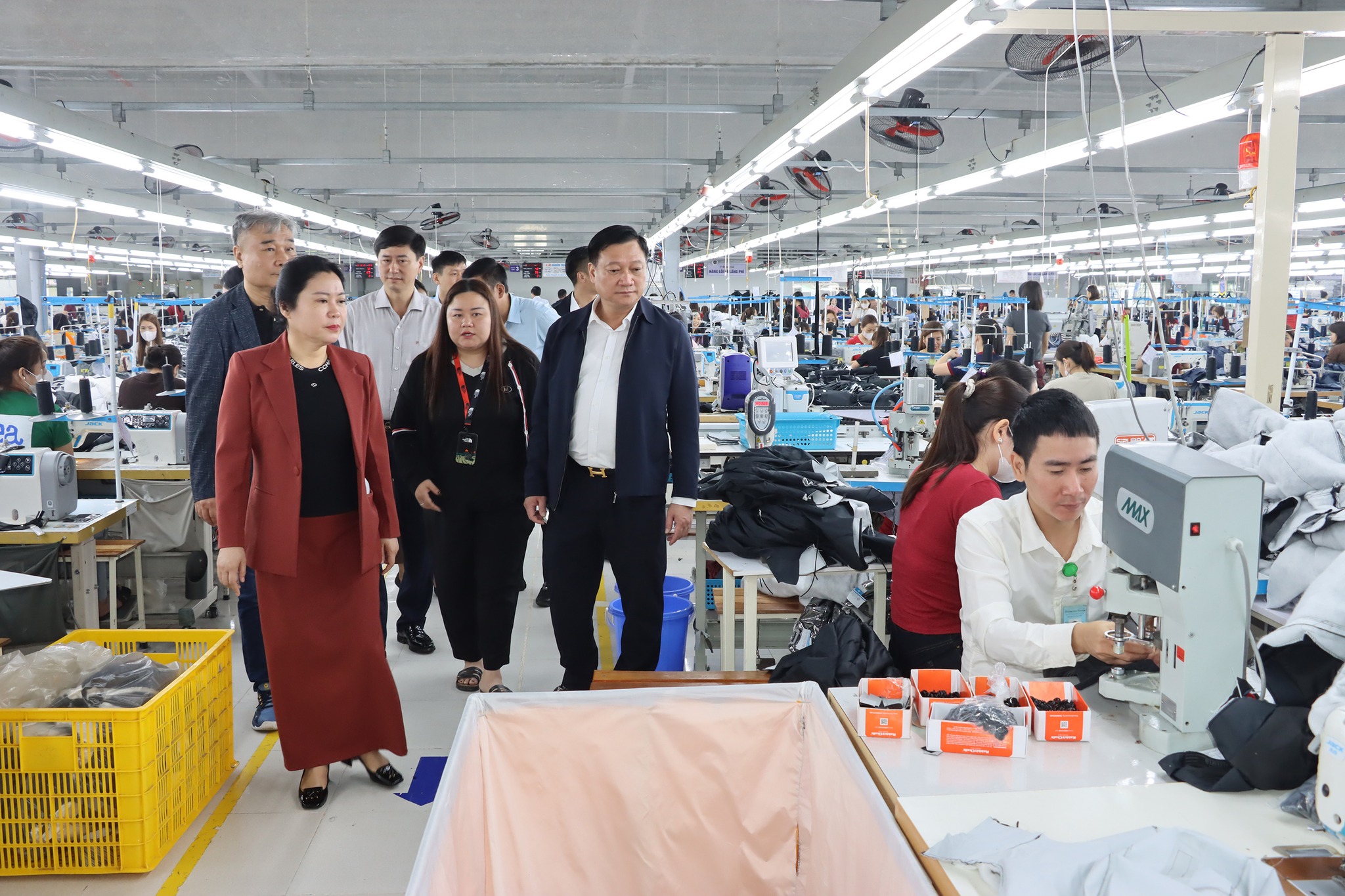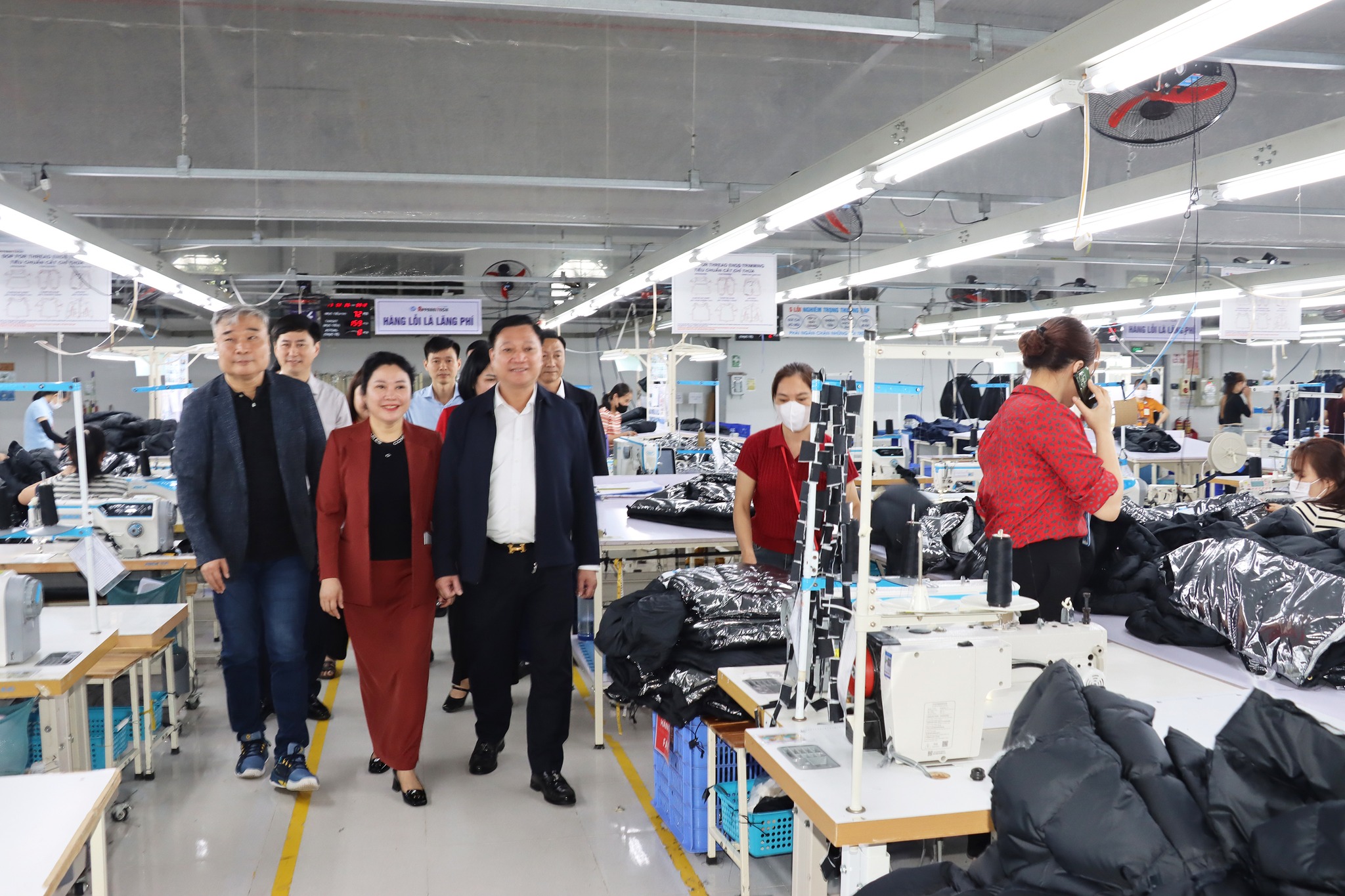 Đoàn cán bộ lãnh đạo tỉnh và xã Đức Thọ thăm hỏi, động viên cán bộ quản lý...Công ty May mặc xuất khẩu Appareltech Hà Tĩnh.
