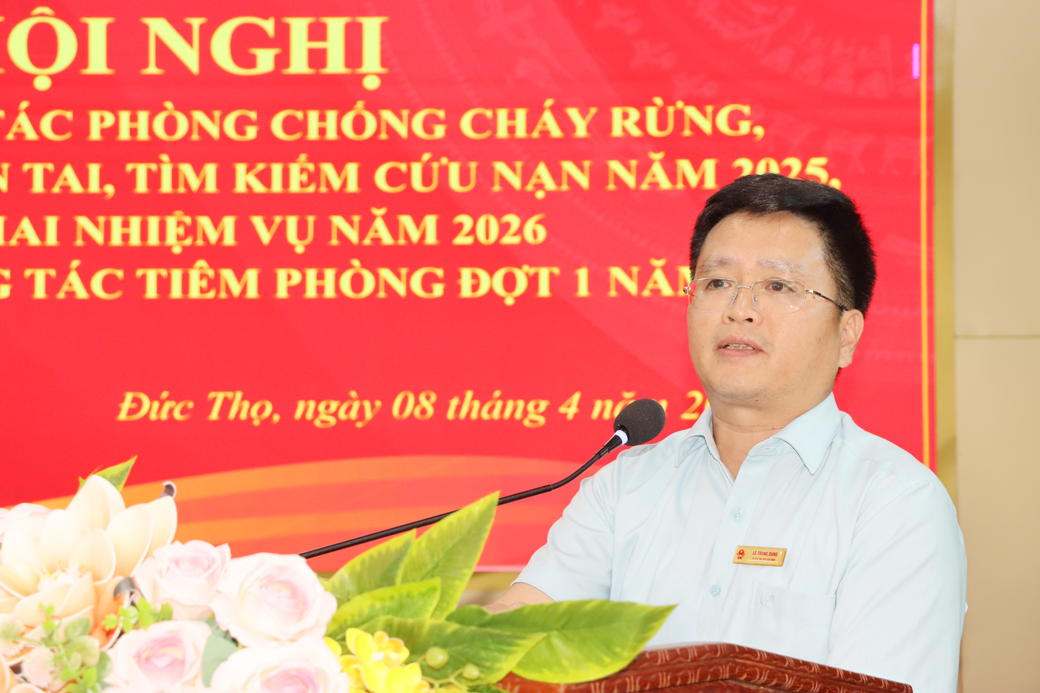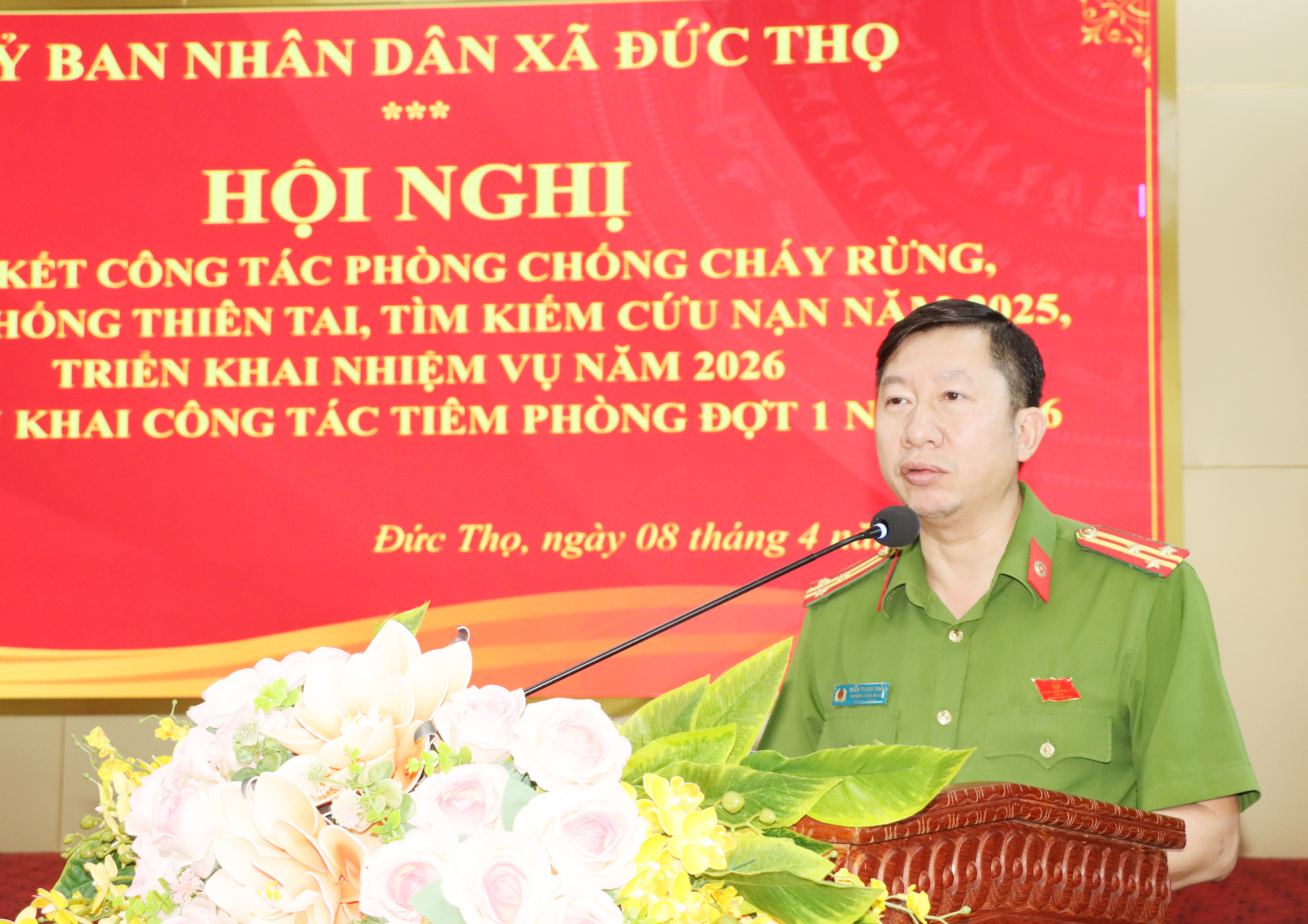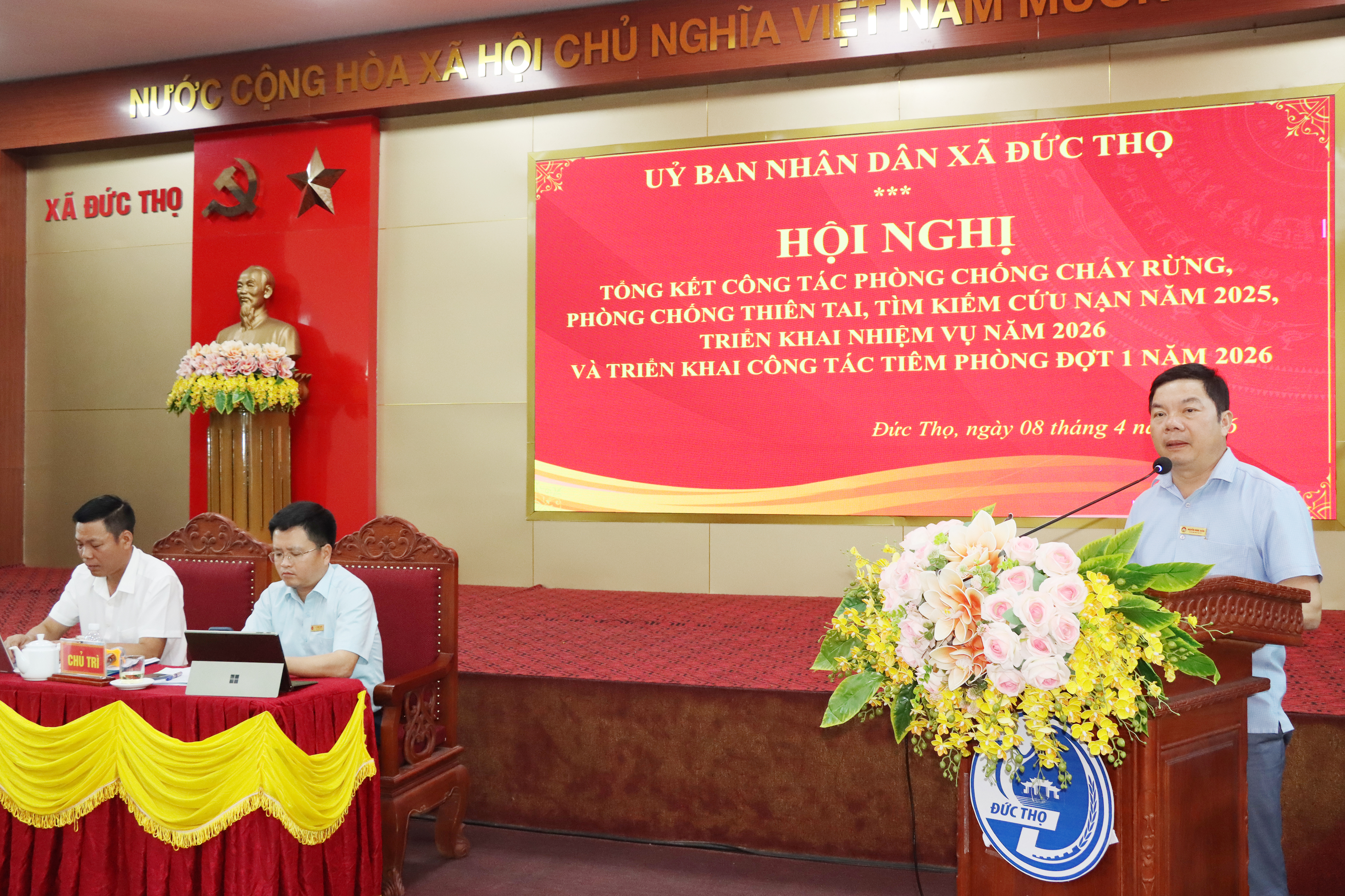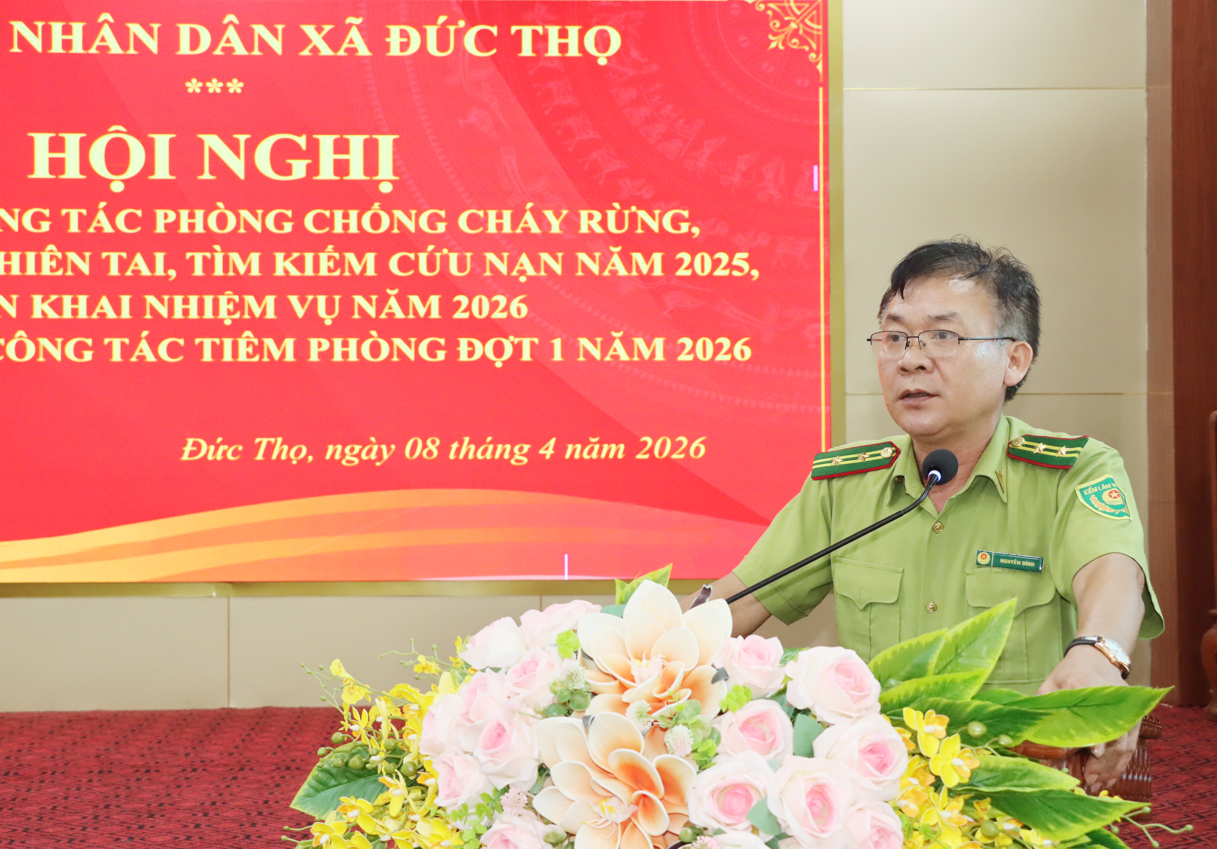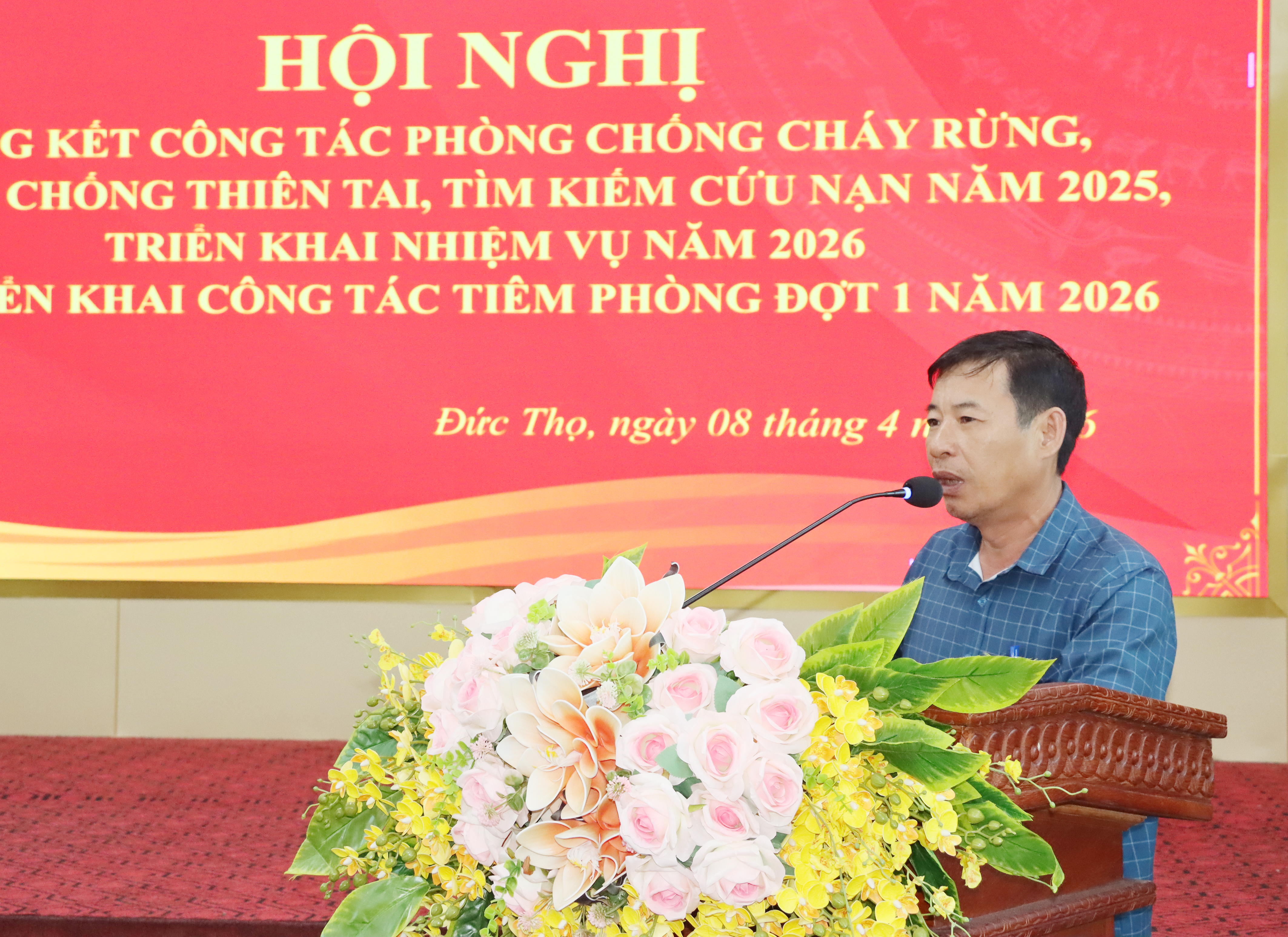 Phát biểu kết luận Hội nghị, đồng chí Lê Trung Dũng, Phó Chủ tịch UBND xã Đức Thọ đề nghị các thôn, chủ rừng xây dựng phương án cụ thể về công tác bảo vệ rừng, PCCCR, phòng chống thiên tai, đồng thời triển khai rộng rãi đến tất cả các tổ chức, cá nhân có liên quan. Tăng cường phối hợp với Kiểm lâm địa bàn và đơn vị Công ty Cao su Hà Tĩnh để kiểm soát chặt chẽ việc sử dụng rừng, ngăn chặn kịp thời các hành vi phạm ngay từ ban đầu. Tăng cường tuyên truyền dưới mọi hình thức để nâng cao ý thức người dân về thiên tai và các biện pháp phòng tránh, công tác BVR, PCCCR và phòng chống thiên tai; xử lý nghiêm các trường hợp vi phạm. Giao trách nhiệm cho phòng, đơn vị liên quan, phối hợp thực hiện công tác bảo vệ rừng, phòng cháy, chữa cháy rừng, phòng chống thiên tai và tìm kiếm cứu nạn năm 2026 đảm bảo hiệu quả. Trước mắt làm tốt công tác tuyên truyền phòng, chống chữa cháy rừng đầu mùa nắng nóng đạt kết quả tốt.