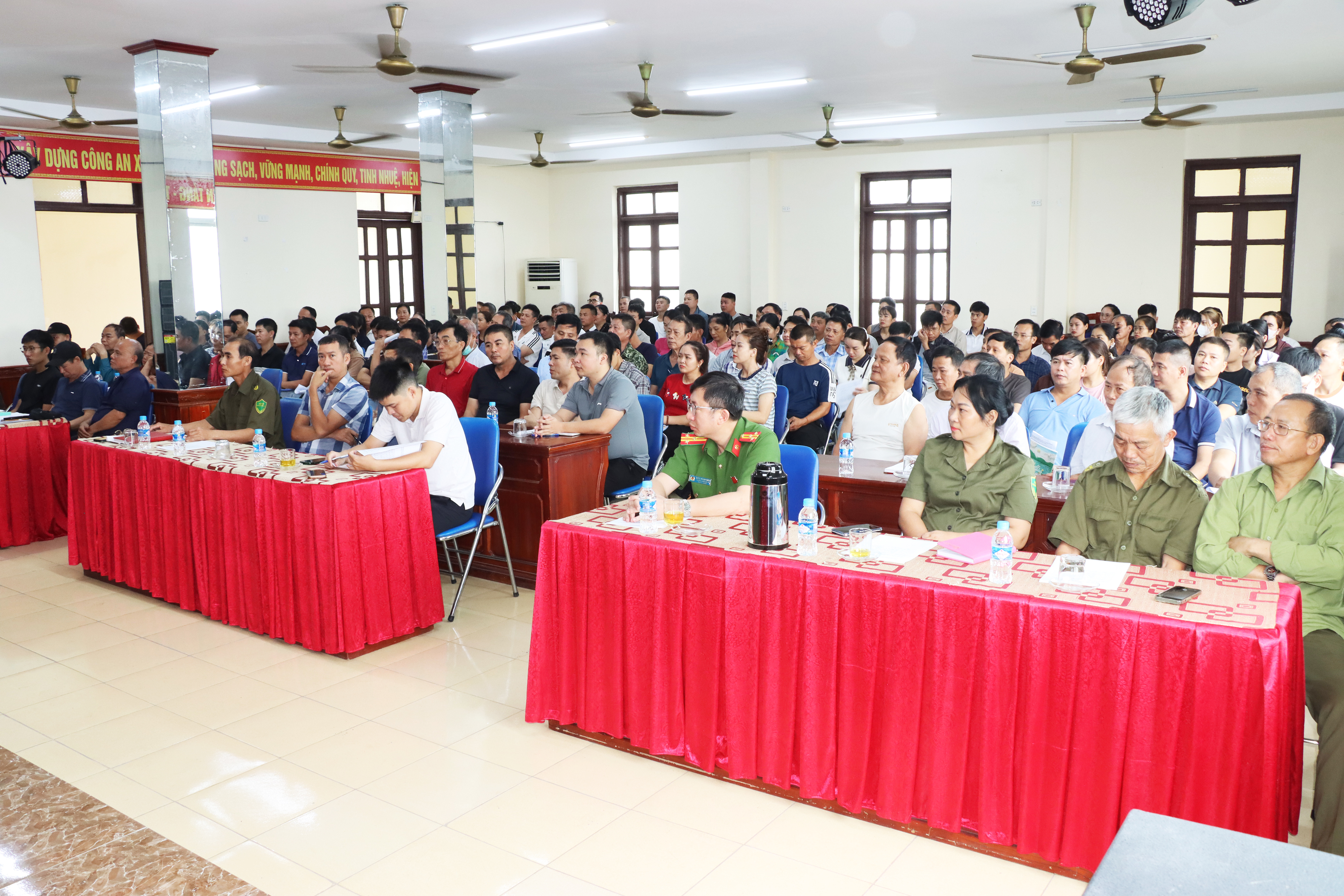 Thiếu tá Nguyễn Thành Nam – Phó trưởng Công an xã phát biểu khai mạc và quán triệt một số nội dung trọng tâm hội nghị