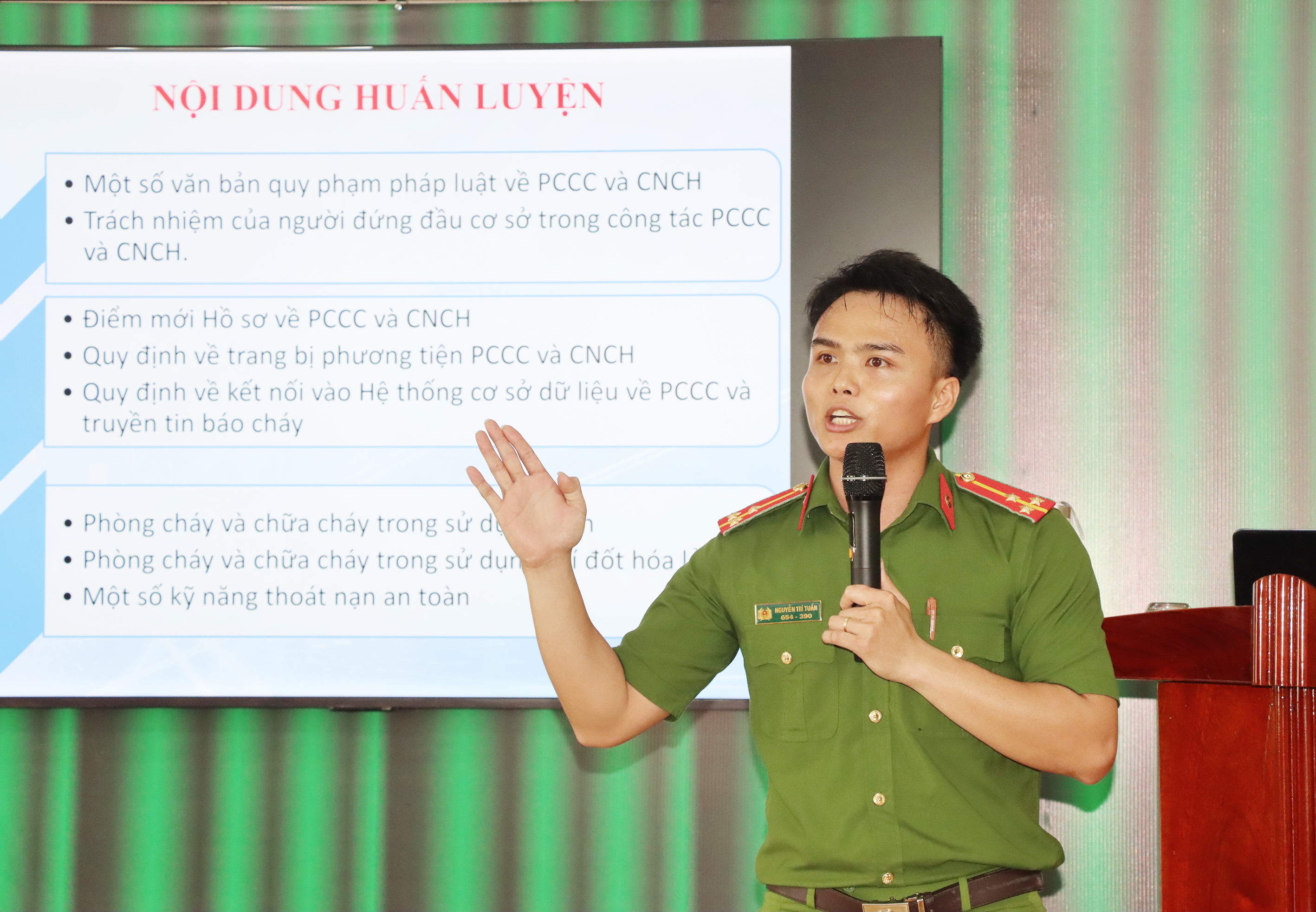 Bên cạnh đó, hội nghị cũng dành thời gian tuyên truyền, quán triệt: Các nội dung được nhấn mạnh gồm: trách nhiệm của người đứng đầu cơ sở trong công tác PCCC và CNCH; việc trang bị phương tiện, xây dựng phương án phòng cháy, chữa cháy; tổ chức lực lượng PCCC tại chỗ; kỹ năng xử lý tình huống khi xảy ra sự cố cháy, nổ, tai nạn.