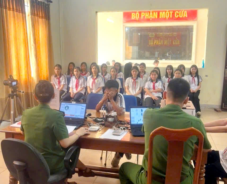 Đẩy mạnh công tác chuyển đổi số, lực lượng đoàn thanh niên Công an xã cũng tích cực phối hợp với các trường học thực hiện chiến dịch cấp định danh điện tử cho học sinh từ 6–14 tuổi, đảm bảo quyền lợi và tiện ích cho thế hệ tương lai.