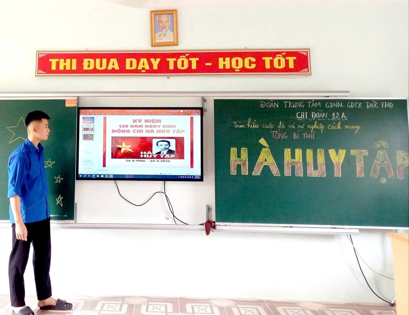 Theo đó, các tổ chức đoàn cơ sở đã tổ chức đợt sinh hoạt sâu rộng giáo dục truyền thống cho thế hệ trẻ qua đây để thế hệ trẻ hôm nay hiểu hơn và ôn lại cuộc đời và sự nghiệp cách mạng vẻ vang của người chiến sĩ cộng sản kiên trung Hà Huy Tập.