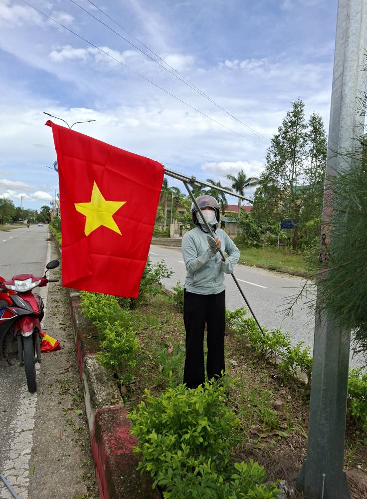 “Trong sáng 30/9/2025, đội ngũ cán bộ phòng văn hóa, xã hội, thôn xóm cùng Nhân dân đã treo lại hơn 400 lá cờ dọc các tuyến đường chính. Mặc dù công tác khắc phục hậu quả bão số 10 còn nhiều khó khăn, nhưng với tinh thần trách nhiệm, mỗi cán bộ, đảng viên và người dân đều ý thức được ý nghĩa của việc treo cờ, trang hoàng đường làng trong sự kiện chính trị quan trọng của tỉnh. Vì vậy, tất cả đều quyết tâm hoàn thành các phần việc trong ngày hôm nay.”