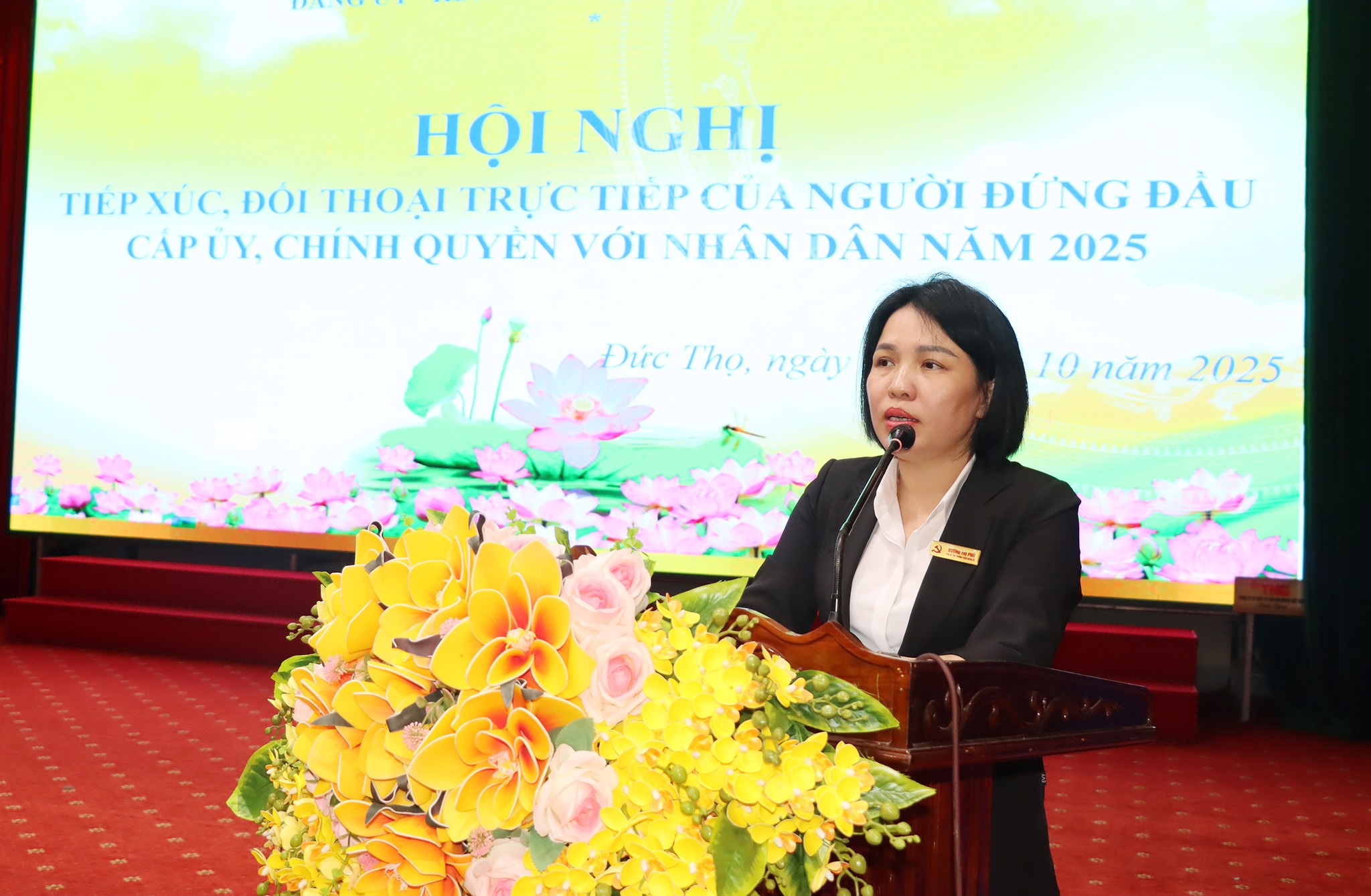 Chiều ngày 29/10, Đảng ủy – HĐND – UBND – UBMTTQ xã Đức Thọ tổ chức hội nghị tiếp xúc, đối thoại trực tiếp của người đứng đầu cấp ủy, chính quyền với Nhân dân năm 2025.