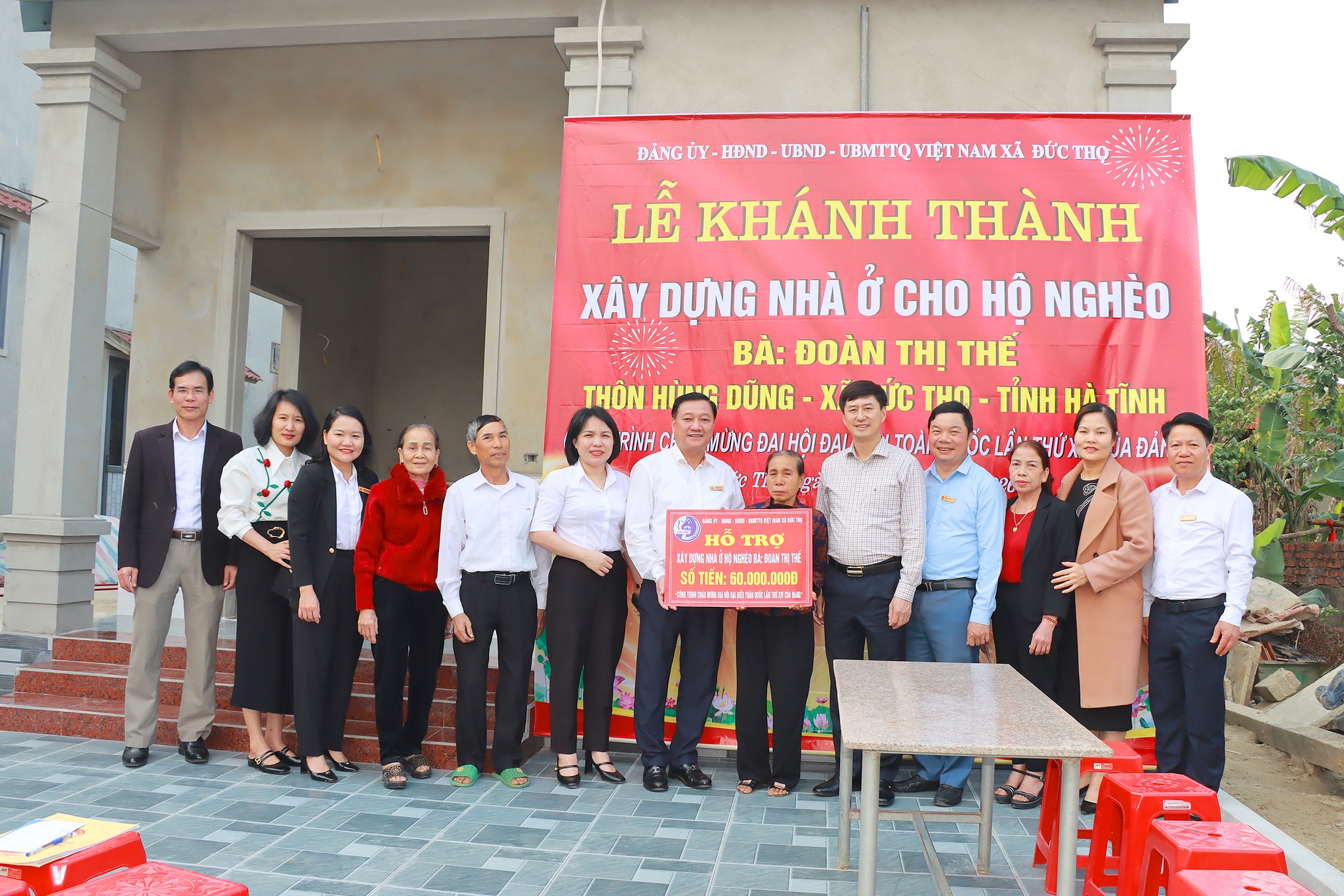 Các đồng chí lãnh đạo xã dự lễ khánh thành nhà ở cho hộ nghèo bà Đoàn Thị Thế - thôn Hùng Dũng,