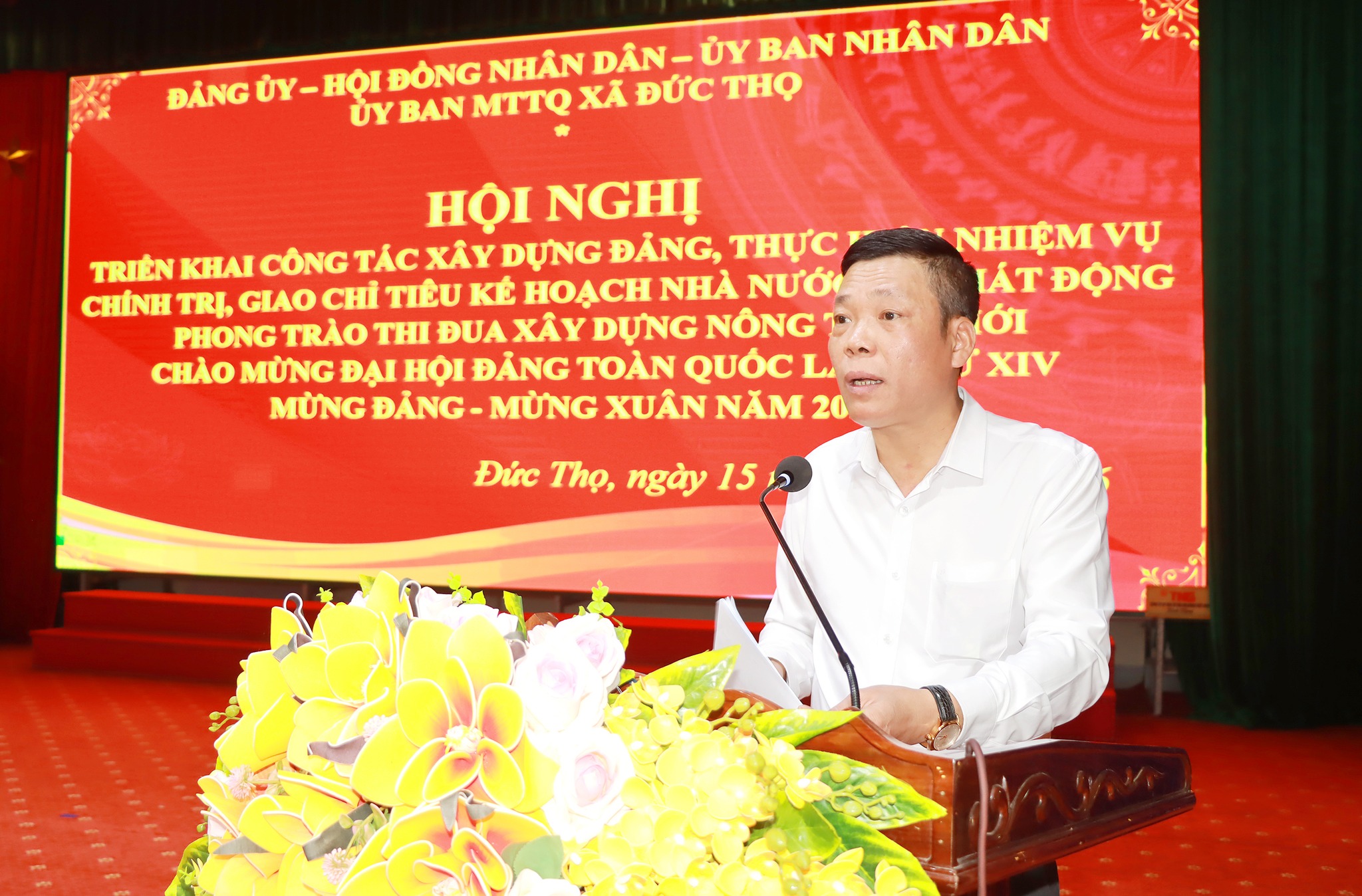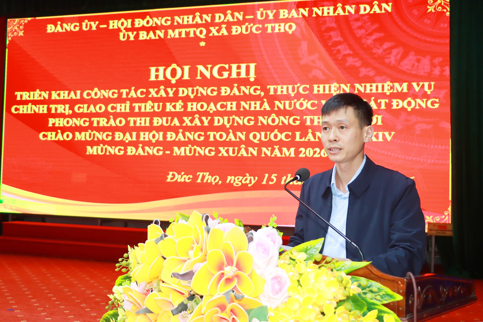 Phát biểu chỉ đạo tại hội nghị, đồng chí Trần Hoài Đức – TUV, Bí thư Đảng ủy, Chủ tịch HĐND xã Đức Thọ kêu gọi toàn thể cán bộ, đảng viên và nhân dân phát huy tinh thần đoàn kết, sáng tạo, vượt qua khó khăn để hoàn thành xuất sắc các chỉ tiêu đã đề ra. Mỗi cá nhân, đơn vị cần coi việc thực hiện kế hoạch Nhà nước không chỉ là trách nhiệm mà còn là hành động thiết thực để lập thành tích chào mừng Đại hội Đảng toàn quốc lần thứ XIV, xây dựng quê hương ngày càng giàu đẹp, văn minh.