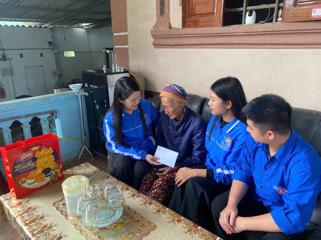 Nằm trong chuỗi hoạt động, thừa uy quyền Tỉnh đoàn Đoàn thanh niên xã đã đến thăm hỏi, tặng quà Mẹ Việt Nam Anh hùng Nguyễn Thị Ngụ và Mẹ Việt Nam Anh hùng Nguyễn Thị Lan (thôn Trẫm Bàng), mỗi suất 1.000.000 đồng.